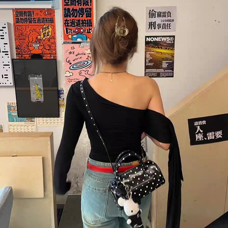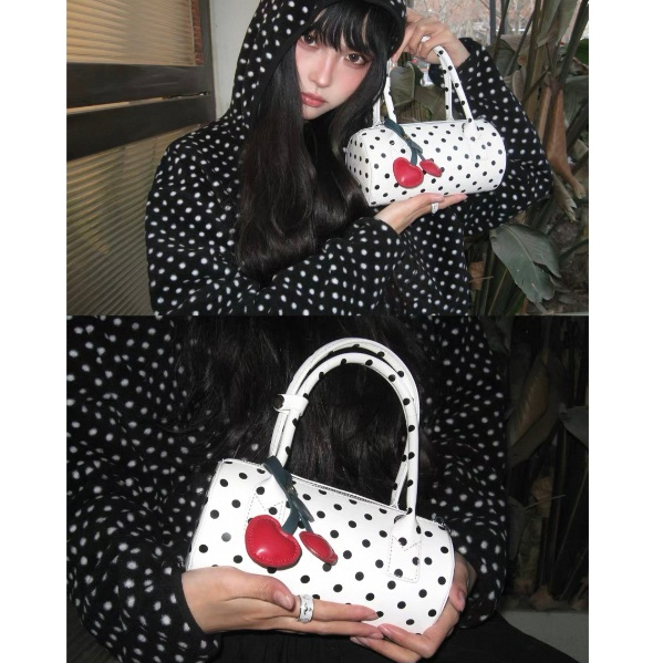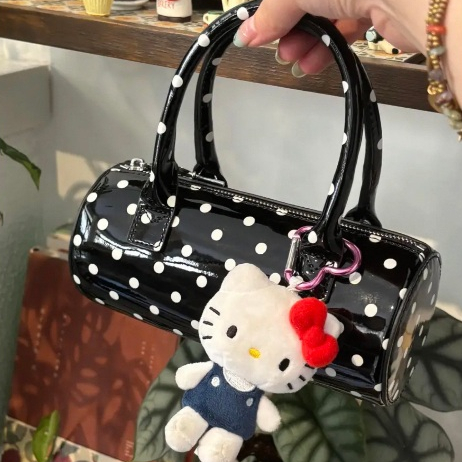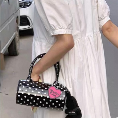 พร้อมส่ง กระเป๋าถือลายจุดทรงหมอนสุดน่ารักมีสายสะพายยาว S189