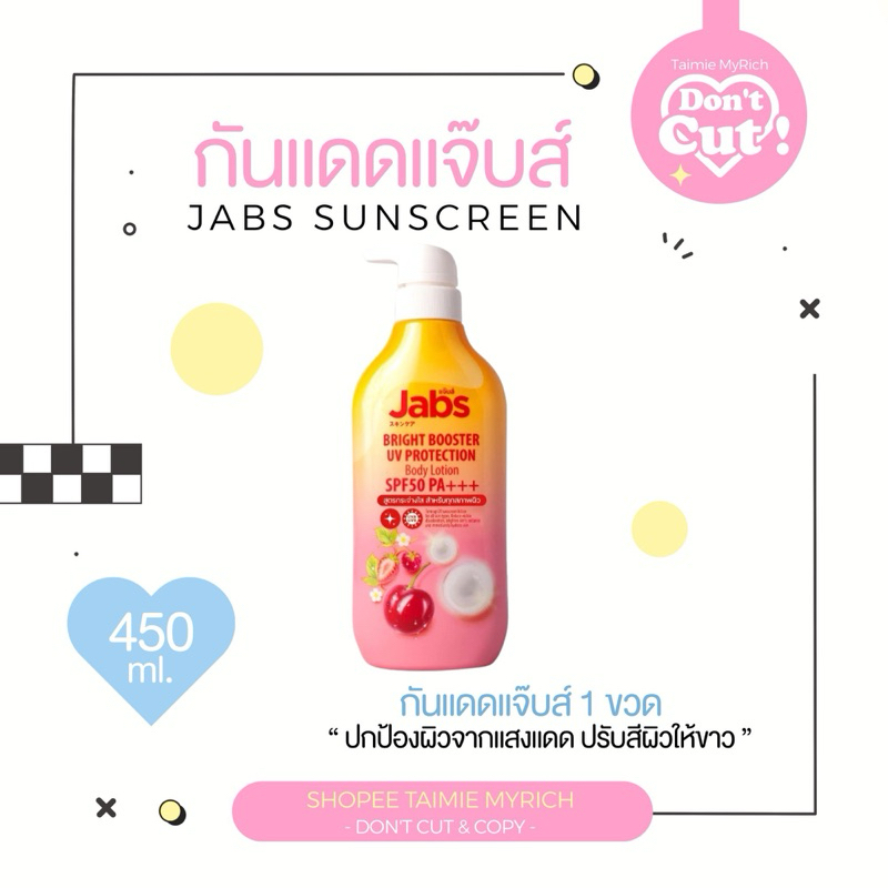 กันแดดตัวดัง ป้องกันแสงแดด ปรับผิวขาวหนึ่งระดับ มีบำรุงในตัว หมวดหมู่ Sun Care รีวิว ยังไม่มีบทวิจารณ์ มาเป็นคนแรกที่วิจารณ์ “( พร้อมส่ง ของแท้ 100% ) Jabs กันแดดแจ๊บส์”Cancel Replyอีเมลของคุณจะไม่แสดงให้คนอื่นเห็น ช่องข้อมูลจำเป็นถูกทำเครื่องหมาย *การให้คะแนนของคุณ * ให้คะแนน… ดีเยี่ยม ดี ปานกลาง ค่อนข้างแย่ แย่มาก Name *Email *บทวิจารณ์ของคุณ * บันทึกชื่อ, อีเมล และชื่อเว็บไซต์ของฉันบนเบราว์เซอร์นี้ สำหรับการแสดงความเห็นครั้งถัดไป ส่ง