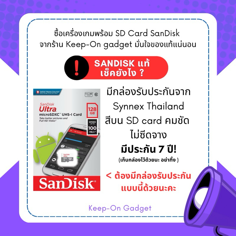 กรณีเลือก SD Card SanDisk ลูกค้าจะได้รับ SD card พร้อมกล่องรับประกันจากศูนย์ Synex อย่าทิ้งกล่องนะคะ❗️