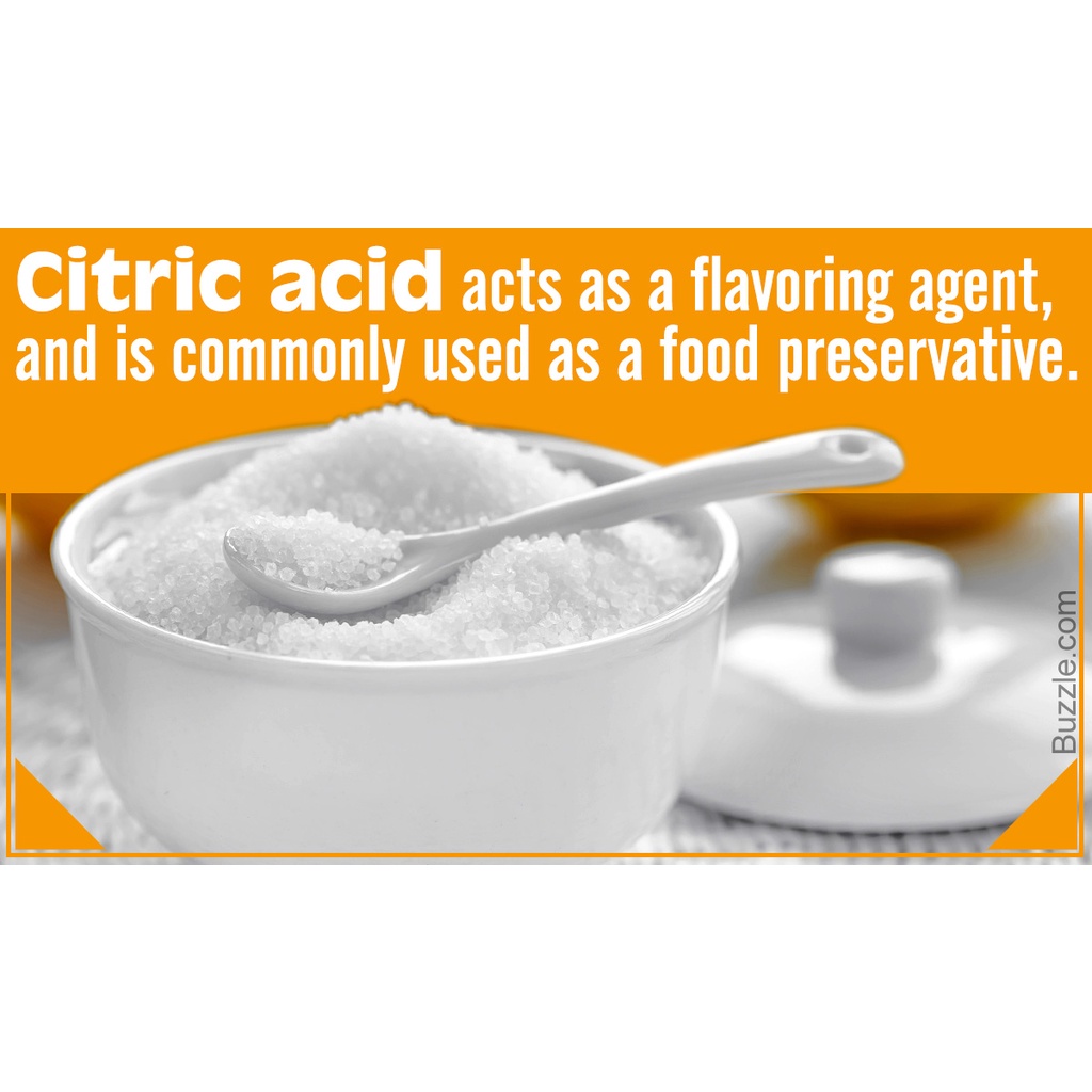 กรดซิตริก เป็นกรดอินทรีย์ (organic acid) ชนิดกรดอ่อน (weak acid) ปลอดภัย ไม่มีอันตราย พบตามธรรมชาติในอาหารหลายชนิด เช่น พืชตระกูลส้ม มะม่วง มะนาว เป็นต้น