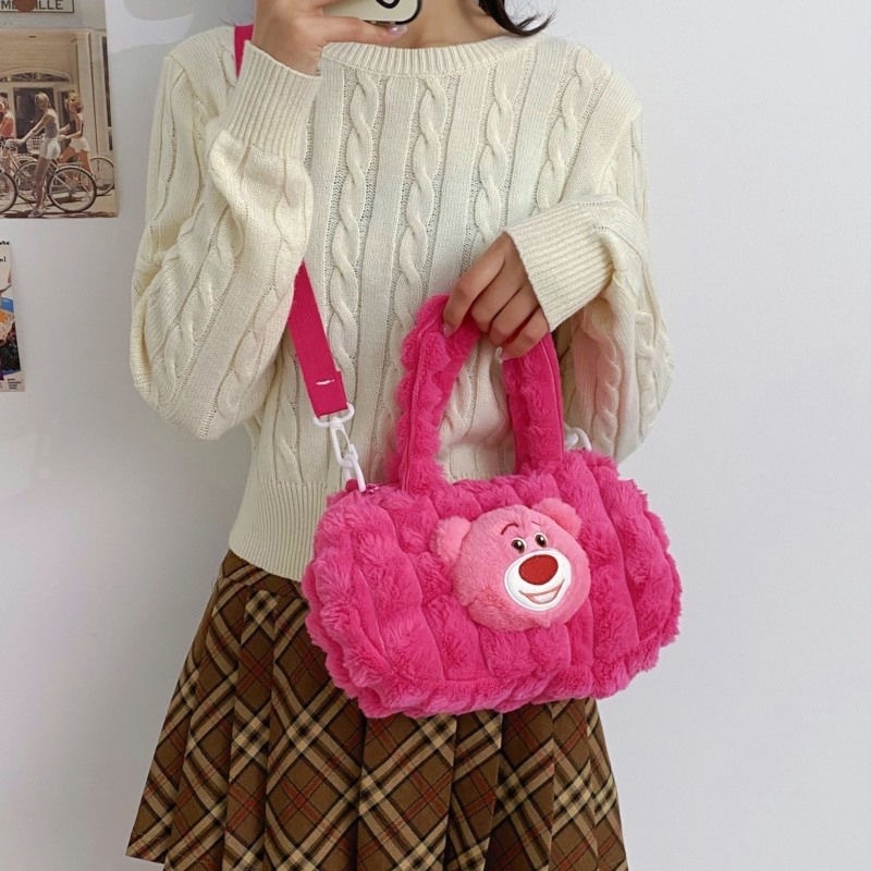 (พร้อมส่ง)Su146 กระเป๋าสะพายไหล่ กระเป๋าถือ ลายการ์ตูนหมี สตรอเบอร์รี่น่ารัก ความจุขนาดใหญ่ สําหรับนักเรียนผู้หญิง