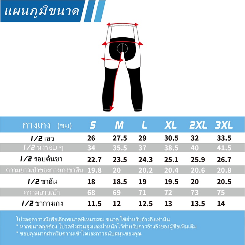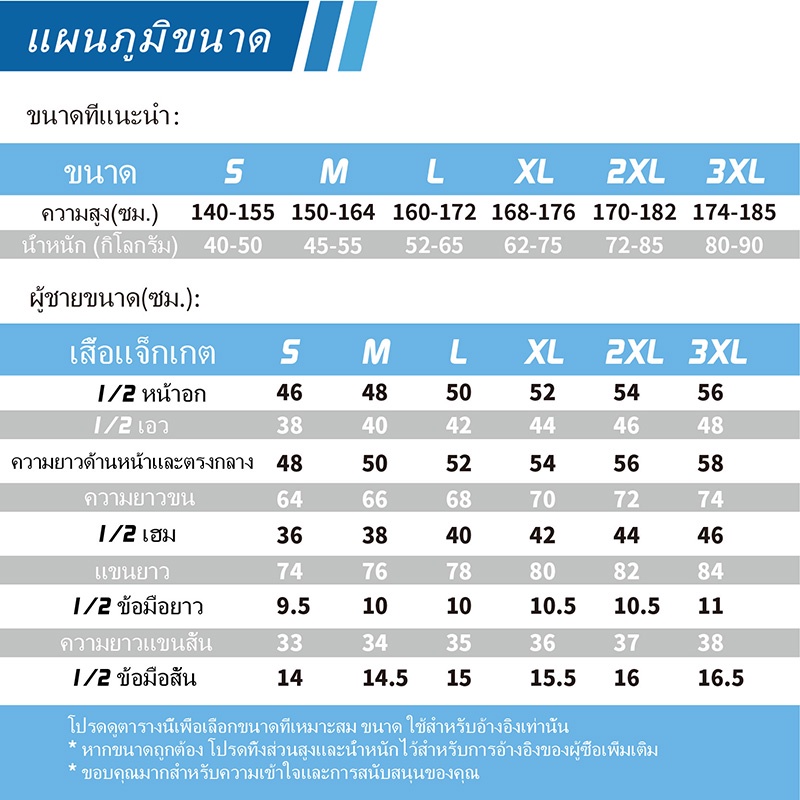 ขนาด: S, M, L, XL, 2XL, 3XL