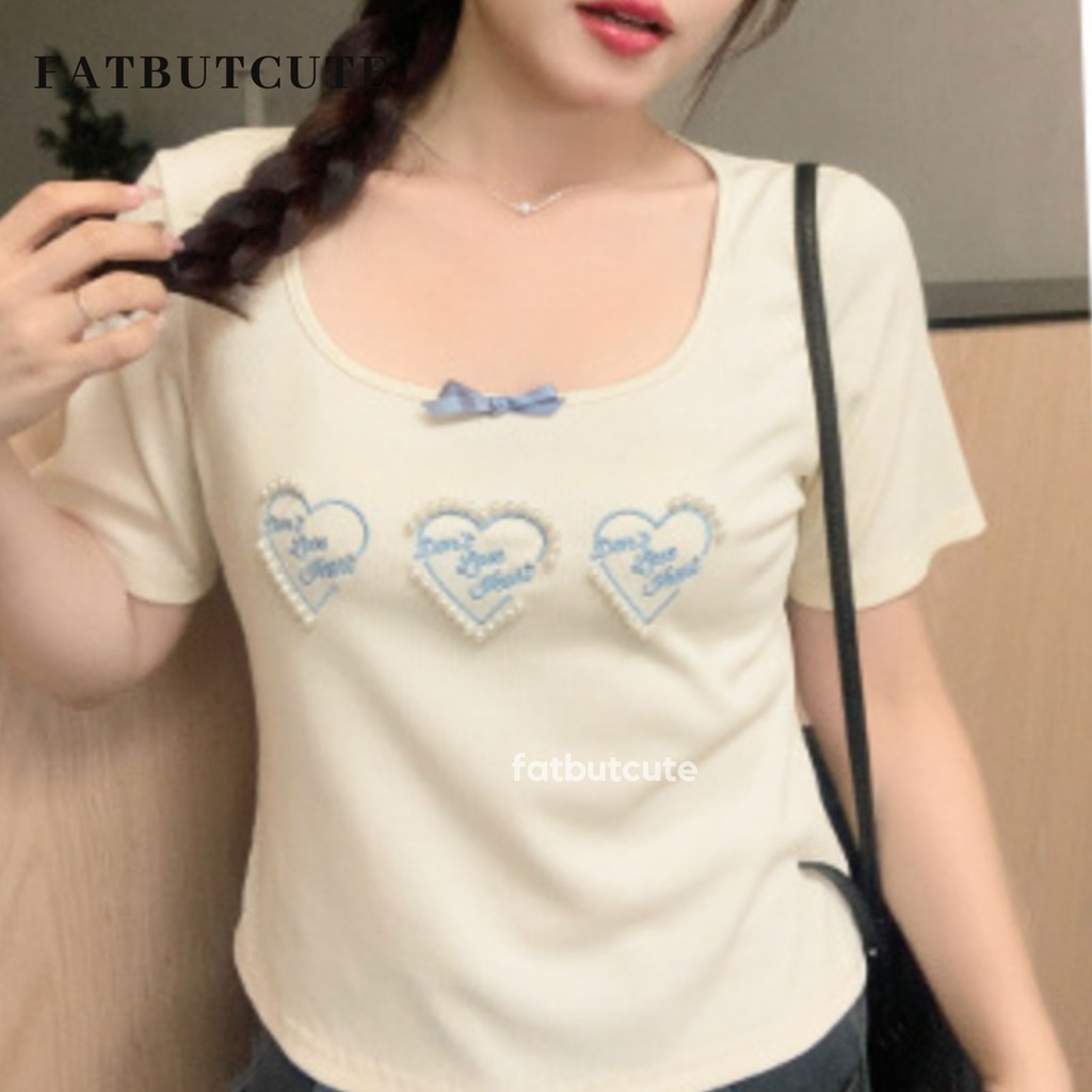 [มีอก38-54นิ้ว] เสื้อยืดสาวอวบงานน่ารักมากก มีปักไข่มุกกลางอก เกาหลีมากค่า รหัส sc62973