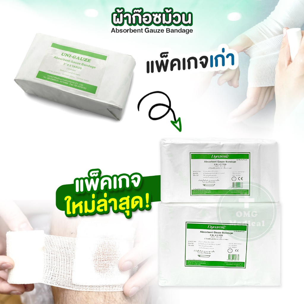 ใหม่ พร้อมส่ง! Uni-Gauze ผ้าก๊อซพันแผล ผ้าก๊อซม้วน ชนิดยืดได้ แบบใช้แล้วทิ้ง Absorbent Gauze Bandage