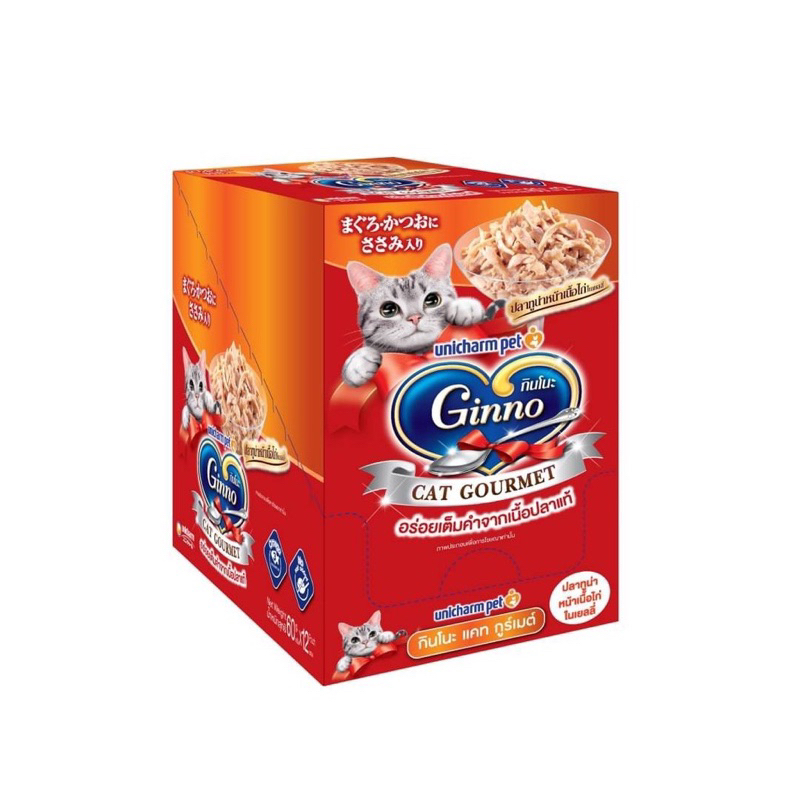 (ยกโหล) Ginno Cat Gourmet กินโนะ อาหารแมวแบบเปียก 60 g (โหล 12 ซอง)