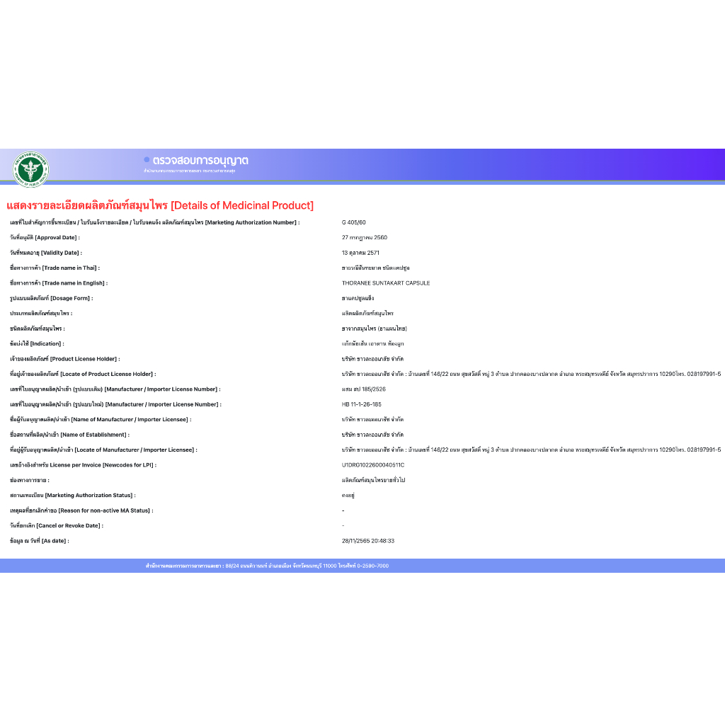 Khaolaor ขาวละออ ยาธรณีสันฑะฆาต ชนิดแคปซูล 60 แคปซูล