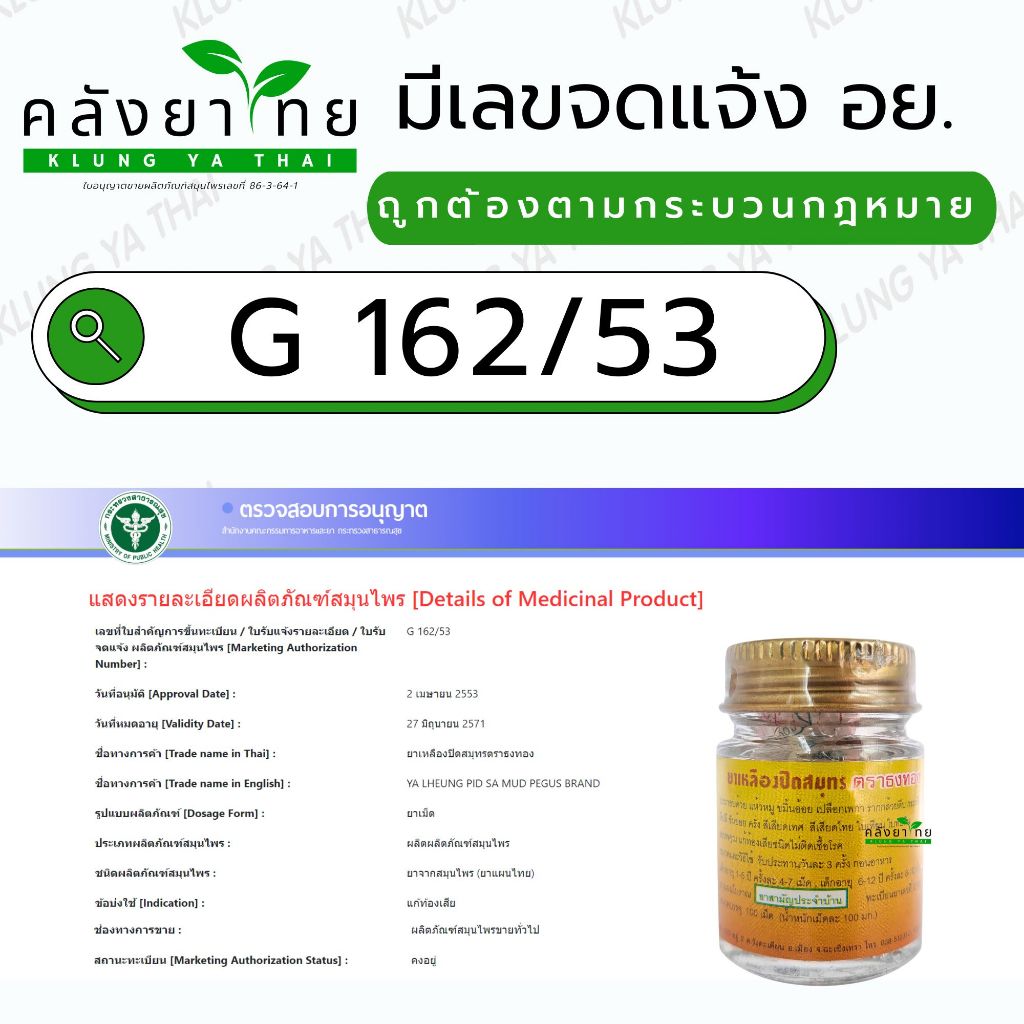 ❤️ทะเบียนยาเลขที่: G 162/53