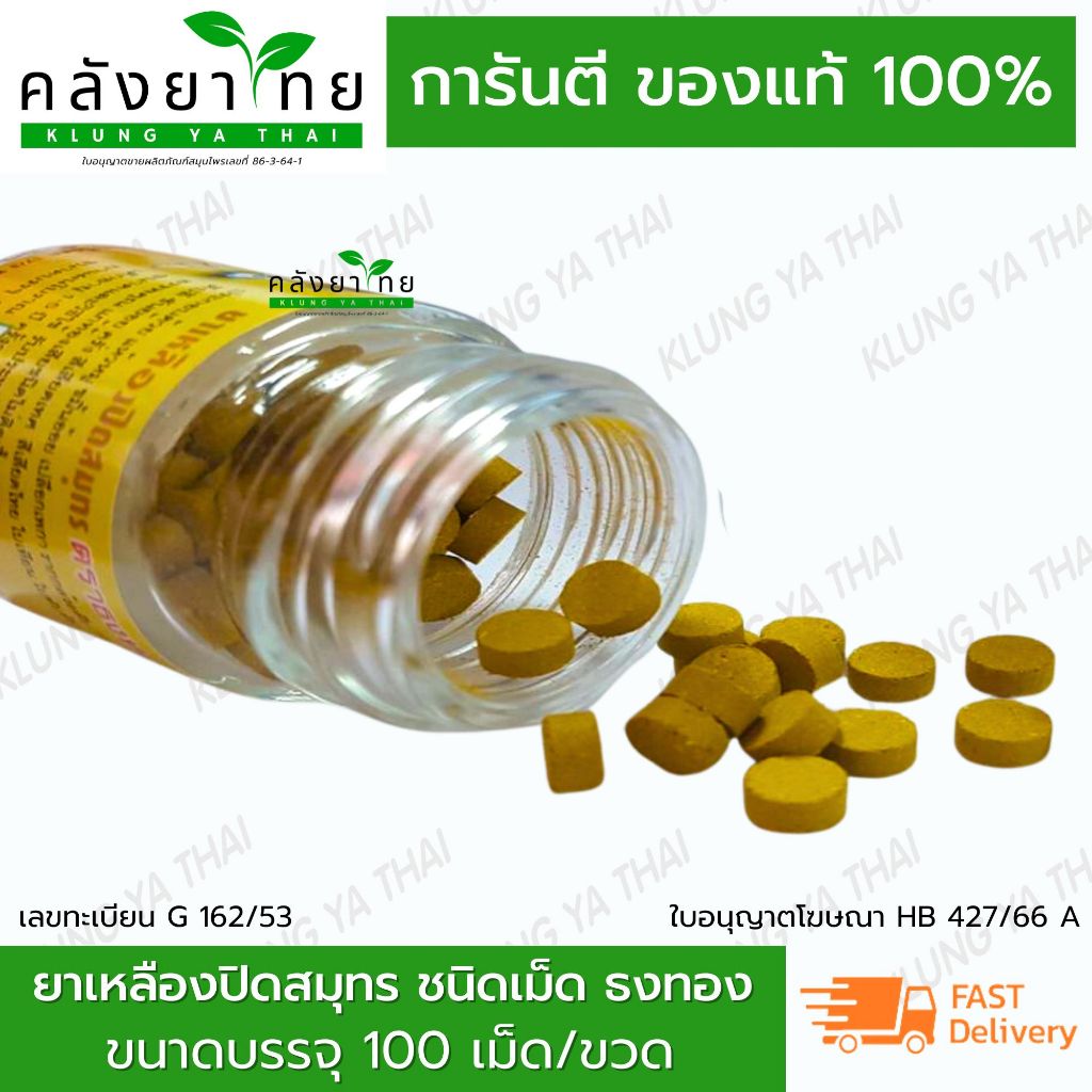 ❌❌ยาเหลืองปิดสมุทร ชนิดเม็ด ตราธงทอง ขนาด 100 เม็ด/ขวด❌❌