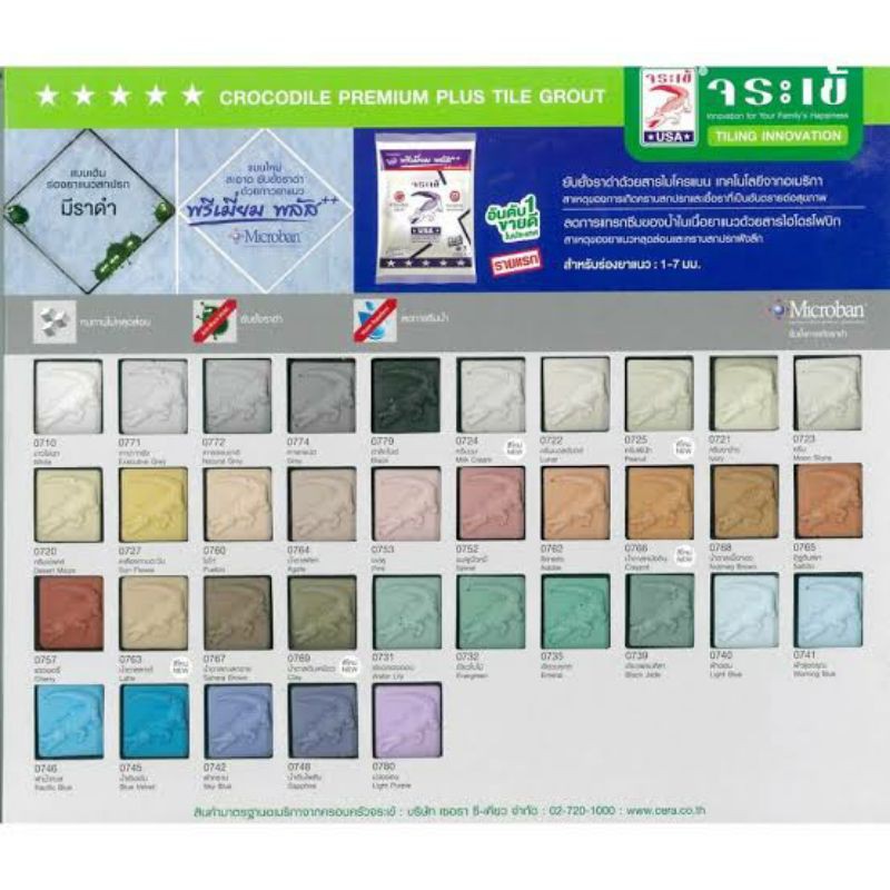 กาวยาแนวจระเข้เงินพรีเมี่ยมพลัส ยาแนวชนิดเนื้อละเอียด มีส่วนผสมของปูนซีเมนต์ปอร์ตแลนด์และสารลาเท็กซ์โพลีเมอร์ จึงทำให้ไม่หลุดล่อน ไม่หดตัว มีการยึดเกาะสูง ไม่มีกลิ่นเหม็นและไม่เป็นอันตรายต่อผู้ใช้ เหมาะสำหรับร่องที่ต้องการยาแนวไม่เกิน 7 มม. ใช้ได้ทั้งงานภายนอกและภายในอาคาร ซึ่งผลิตภัณฑ์กาวยาแนวชนิดนี้ยังเพิ่มคุณสมบัติพิเศษ โดยมีสารยับยั้งราดำและสารไฮโดรโฟบิกช่วยลดการสะสมของคราบสกปรกฝังแน่น เพื่อง่ายต่อการทำความสะอาดและมีอายุการใช้งานอย่างยาวนาน