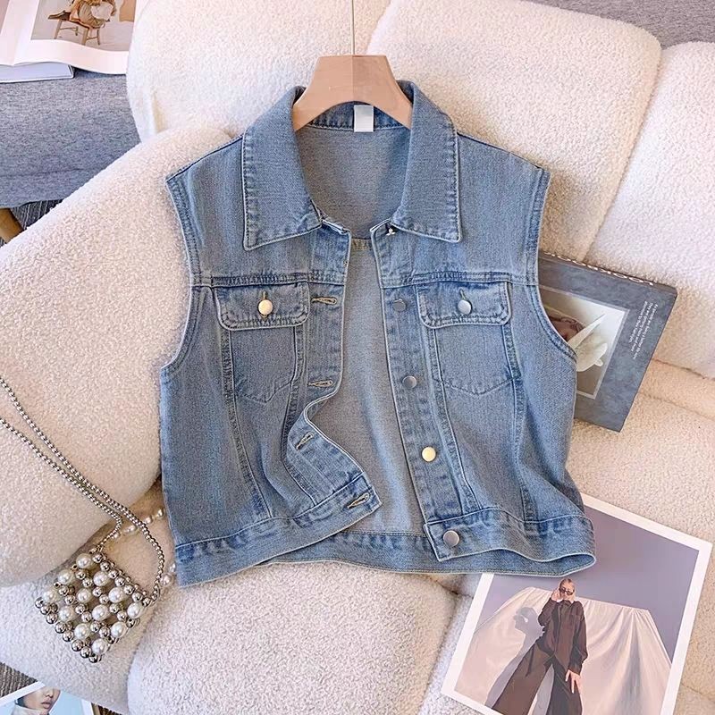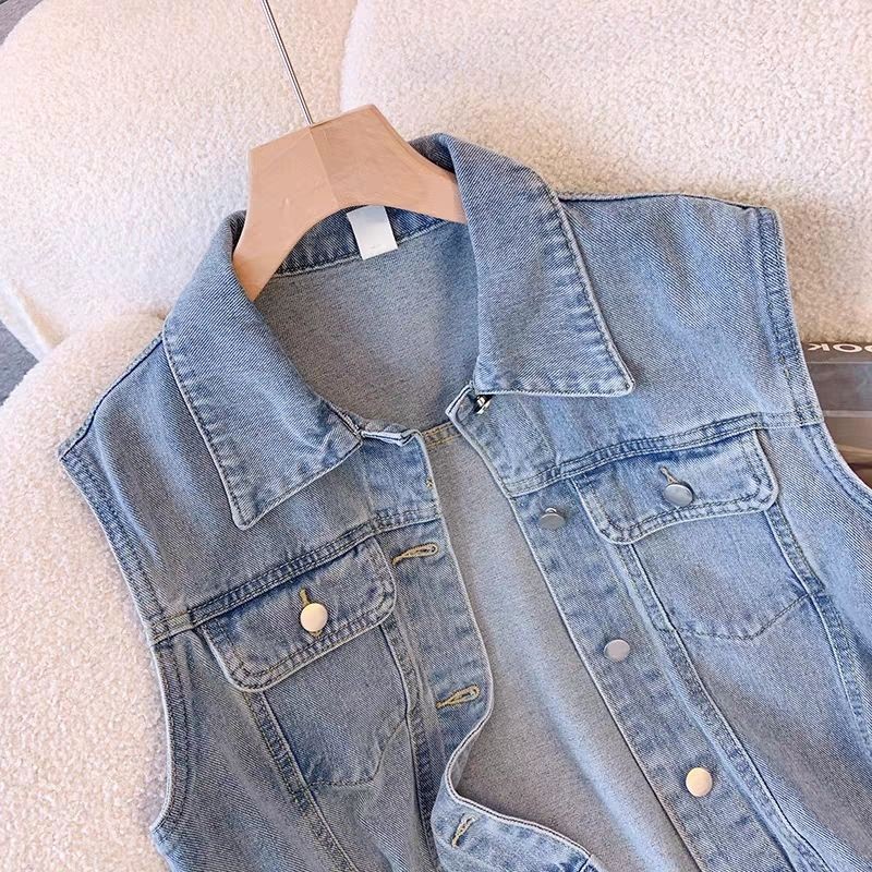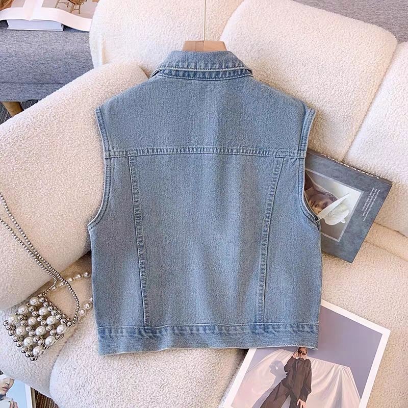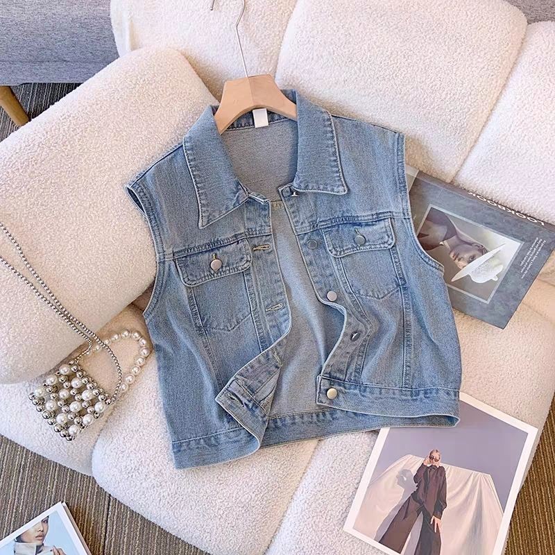 ย้อนยุคสไตล์ฮ่องกงเสื้อกั๊กแขนกุดยีนส์เสื้อกั๊กแจ็คเก็ตผู้หญิงฤดูใบไม้ผลิฤดูใบไม้ร่วงรูปแบบใหม่ปีนี้เสื้อกั๊กยอดนิยมด้านบน