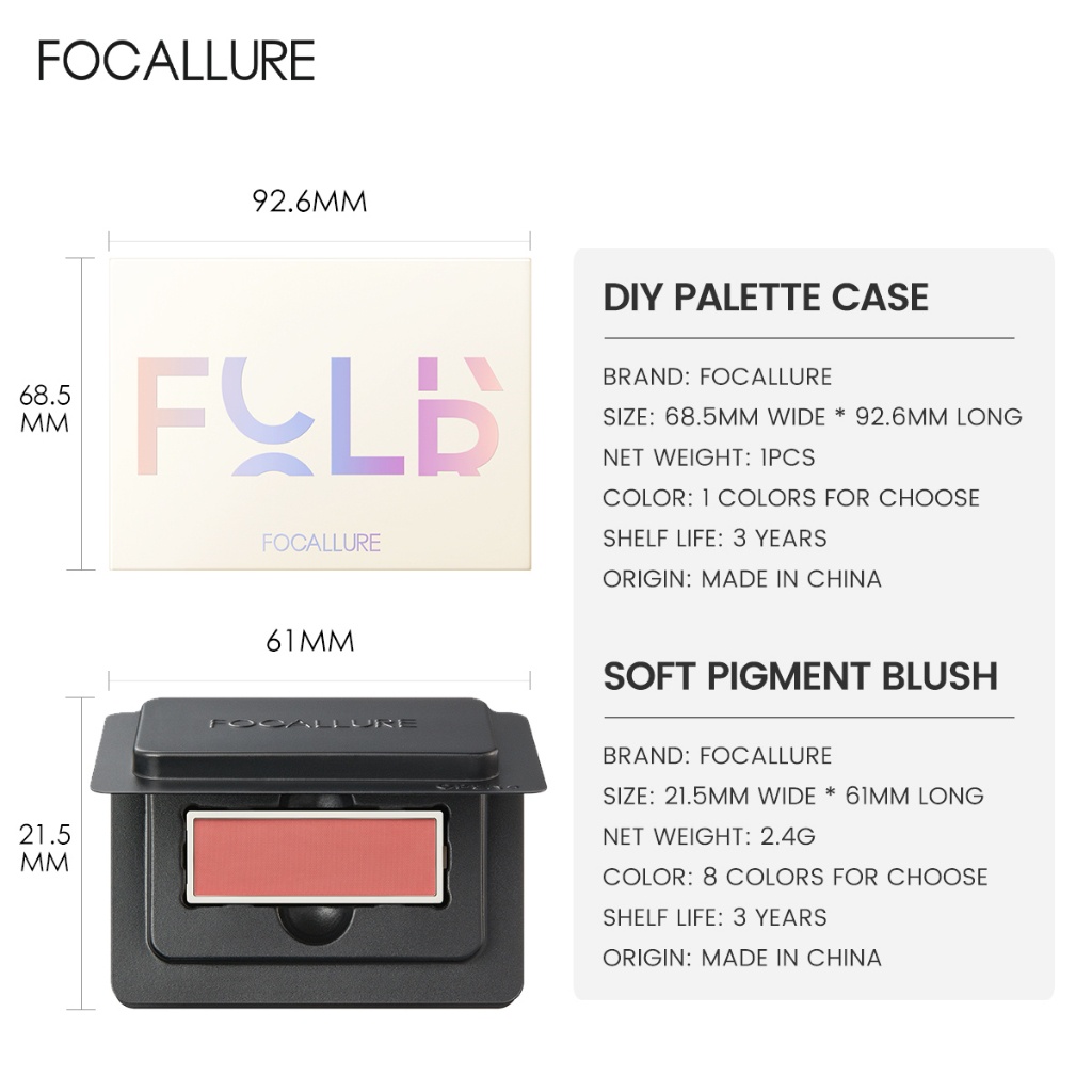 Focallure Pro-palette DIY blush Expert, 8 สีที่หลากหลาย, เนื้อสัมผัสที่เรียบเนียนและน้ำหนักเบาพร้อมเอฟเฟกต์ที่สร้างได้ซึ่งผสมผสานกันอย่างลงตัวและง่ายดายเพื่อบลัชออนที่ดูเป็นธรรมชาติในทันที ประการที่สองไม่เพียง แต่พวกเขาสามารถซื้อเป็นรายบุคคล แต่คุณยังสามารถซื้อจานสีขาวเปล่าเพื่อ DIY จานสี 4 บลัชออนพิเศษของคุณ