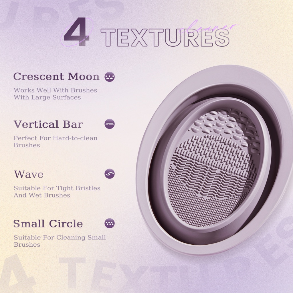 อนุภาคที่แตกต่างกัน 4 ชนิด [4 พื้นผิว] ทำจากซิลิโคนที่เป็นมิตรกับสิ่งแวดล้อมรูปทรงต่างๆ 4 แบบออกแบบมาสำหรับแปรงขนาดต่างๆขจัดคราบเครื่องสำอางบนหัวแปรงได้อย่างมีประสิทธิภาพ