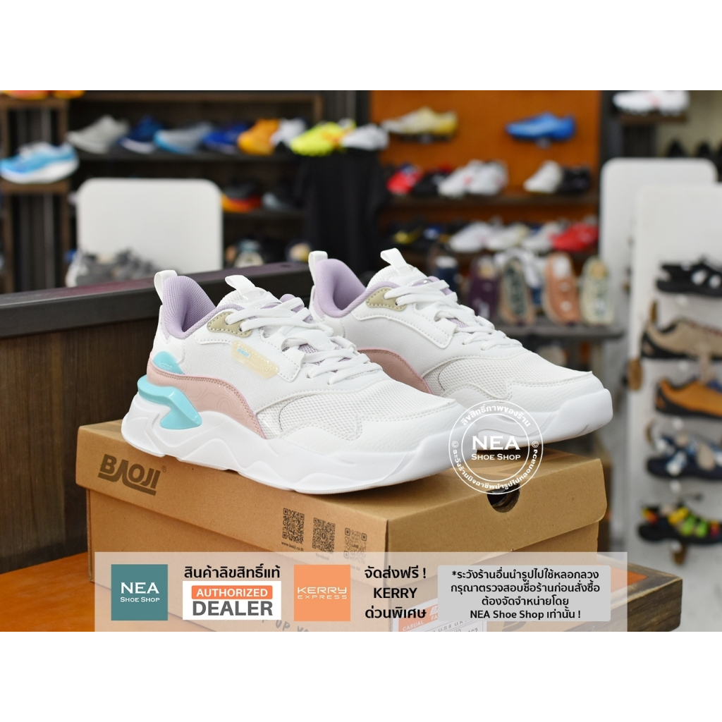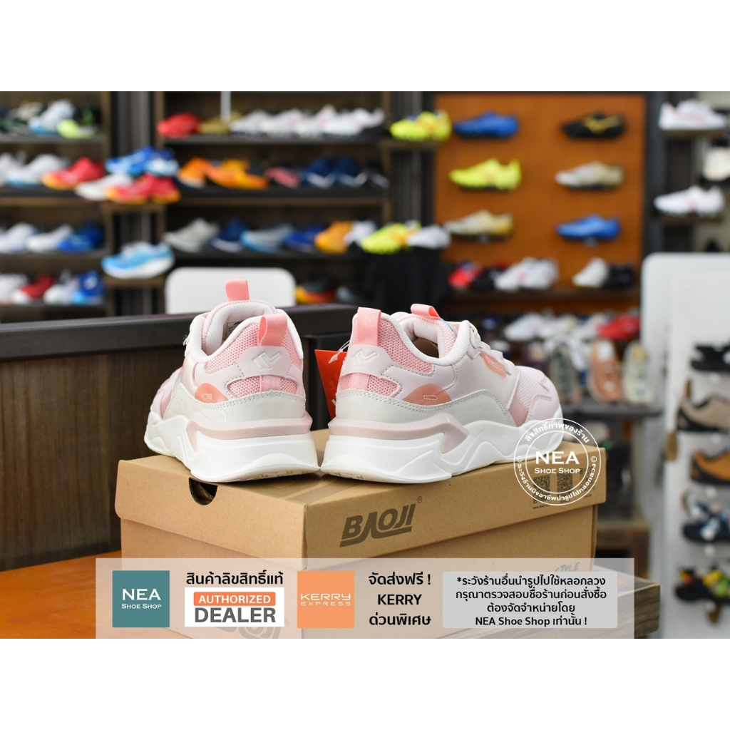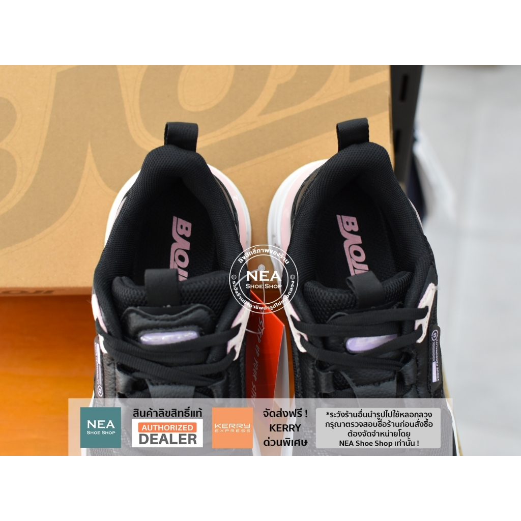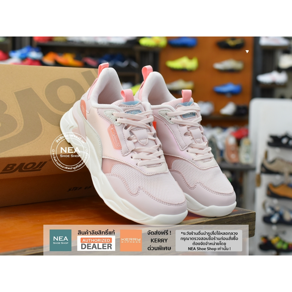รองเท้าผู้หญิงที่มาพร้อมผ้า Upper แบบ Mesh ทอพิเศษ เนื้อดี ลายสวยมาก รูปทรงรองเท้าออกแบบสไตล์สปอร์ต เพิ่มศักยภาพด้วย Midsole แบบ Boost นุ่มแน่น ใส่สบายมาก และช่วยรองรับแรงกระแทก ทั้งระบบพื้นรองภายในเอกสิทธิ์เฉพาะของ Baoji ที่เรียกว่า “Baoji Super Insole” พื้นมีความนุ่มเท้า หยืดหยุ่น ระบายอากาศ ใส่สบายอย่างมากและทำให้รองเท้าน้ำหนักเบาอีกด้วย