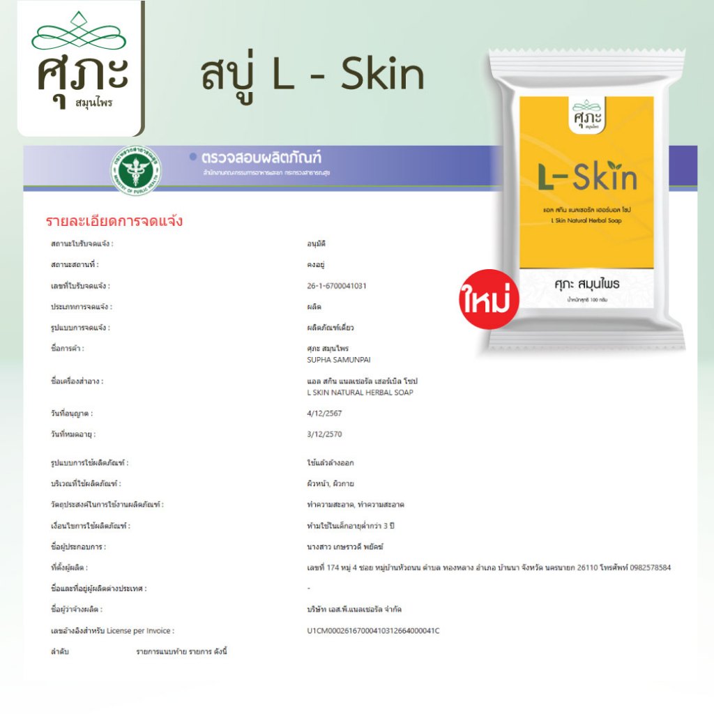 (ศุภะสมุนไพร) สบู่ผิว L-skin ดูแลผิวสะเก็ดเงิน ผื่นคัน – 100 กรัม/ชิ้น . หมวดหมู่ Body Wash & Soap รีวิว ยังไม่มีบทวิจารณ์ มาเป็นคนแรกที่วิจารณ์ “(ศุภะสมุนไพร) สบู่ผิว L-skin ดูแลผิวสะเก็ดเงิน ผื่นคัน – 100 กรัม/ชิ้น”Cancel Replyอีเมลของคุณจะไม่แสดงให้คนอื่นเห็น ช่องข้อมูลจำเป็นถูกทำเครื่องหมาย *การให้คะแนนของคุณ * ให้คะแนน… ดีเยี่ยม ดี ปานกลาง ค่อนข้างแย่ แย่มาก Name *Email *บทวิจารณ์ของคุณ * บันทึกชื่อ, อีเมล และชื่อเว็บไซต์ของฉันบนเบราว์เซอร์นี้ สำหรับการแสดงความเห็นครั้งถัดไป ส่ง