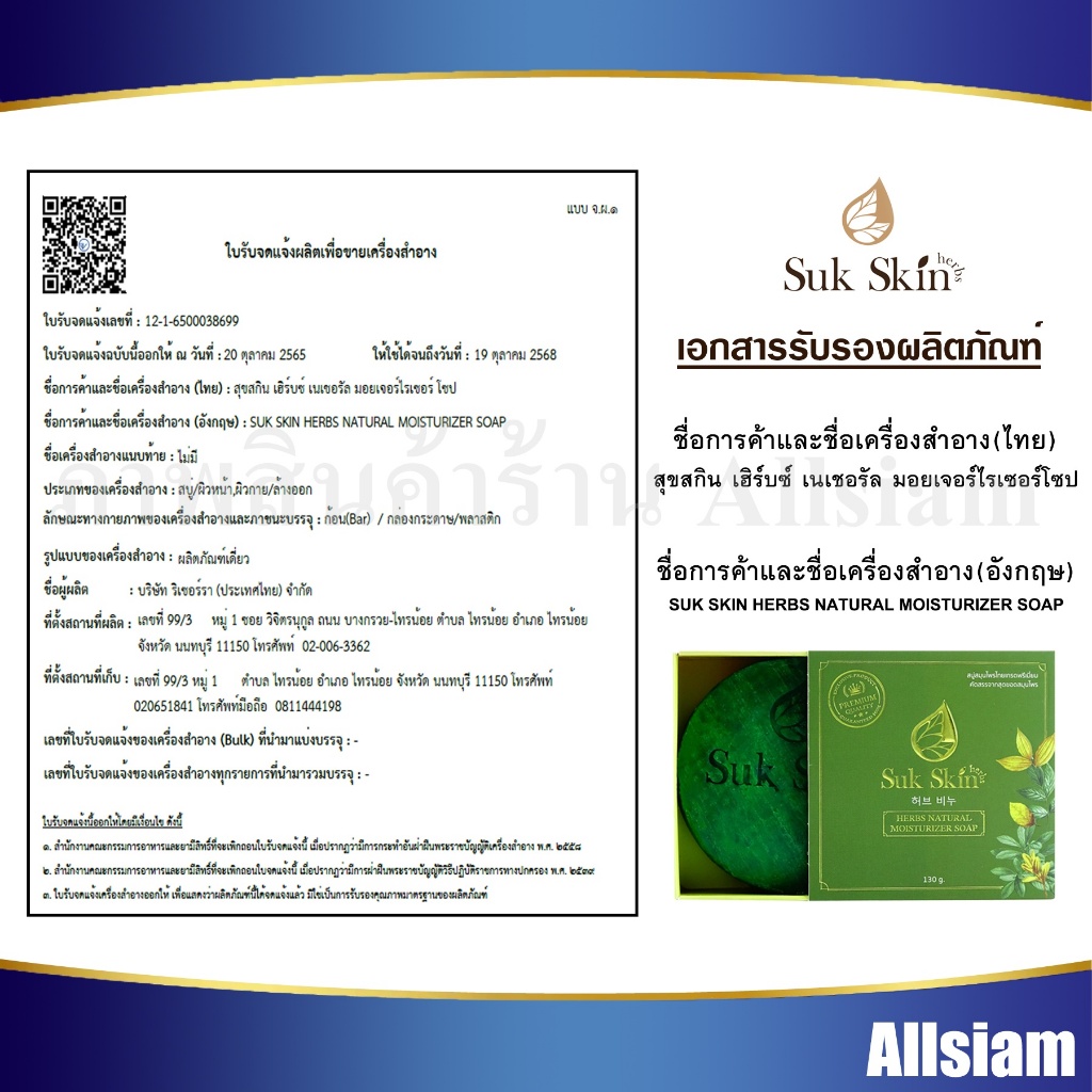 – ใบรับจดแจ้งเลขที่: 12-1-6500038699