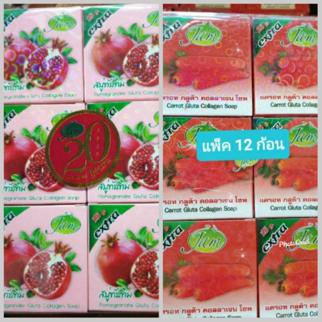 12ก้อนสบู่แครอท +มังคุด+ส้มผสมไข่มุก+น้ำนมข้าว+กาแฟผสมโสม+รังนก+บัวหิมะ+มัขามก้อนละ 65 กรัม