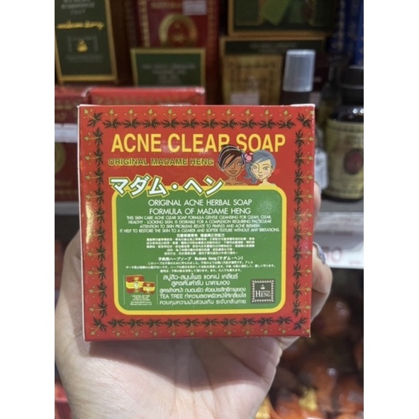 สบู่สิว- สมุนไพร แอคเน่เคลียร์ สูตรต้นตำรับมาดามเฮง สูตรล้างหน้า ถนอมผิว ด้วยส่วนผสมของ ทรีทรีออยล์ ทำความสะอาดผิวหน้าให้เกลี้ยงใส ควบคุมความมันส่วนเกิน