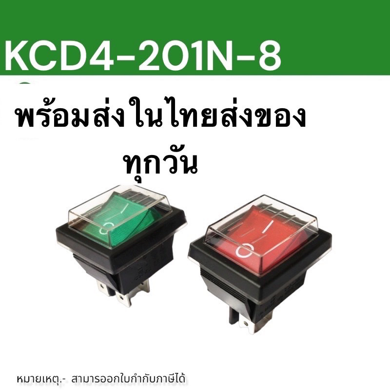 สวิตช์คันโยก Kcd4-201 N – B ปิด-เปิด 4ขา สีแดงสีเขียวสีเหลือง 16 A 250 V พร้อมยางกันน้ำ สวิตช์+ยางกันน้ำ ต่อ1ชุด