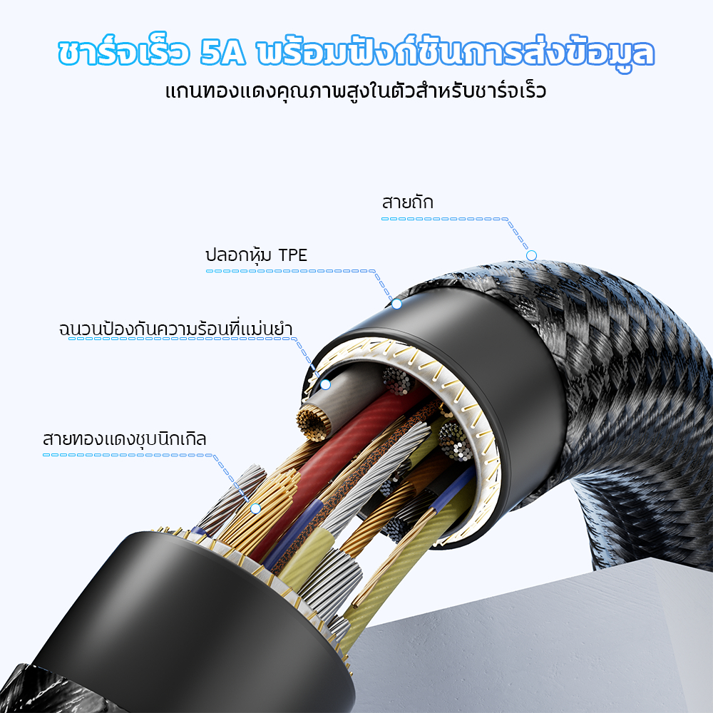 สายชาร์จ USB นี้มีฟังก์ชั่นการส่งข้อมูล ซึ่งไม่เพียงแต่สามารถชาร์จอุปกรณ์ด้วยความเร็วสูงเท่านั้น แต่ยังสามารถถ่ายโอนข้อมูลได้ในเวลาเดียวกันอีกด้วย