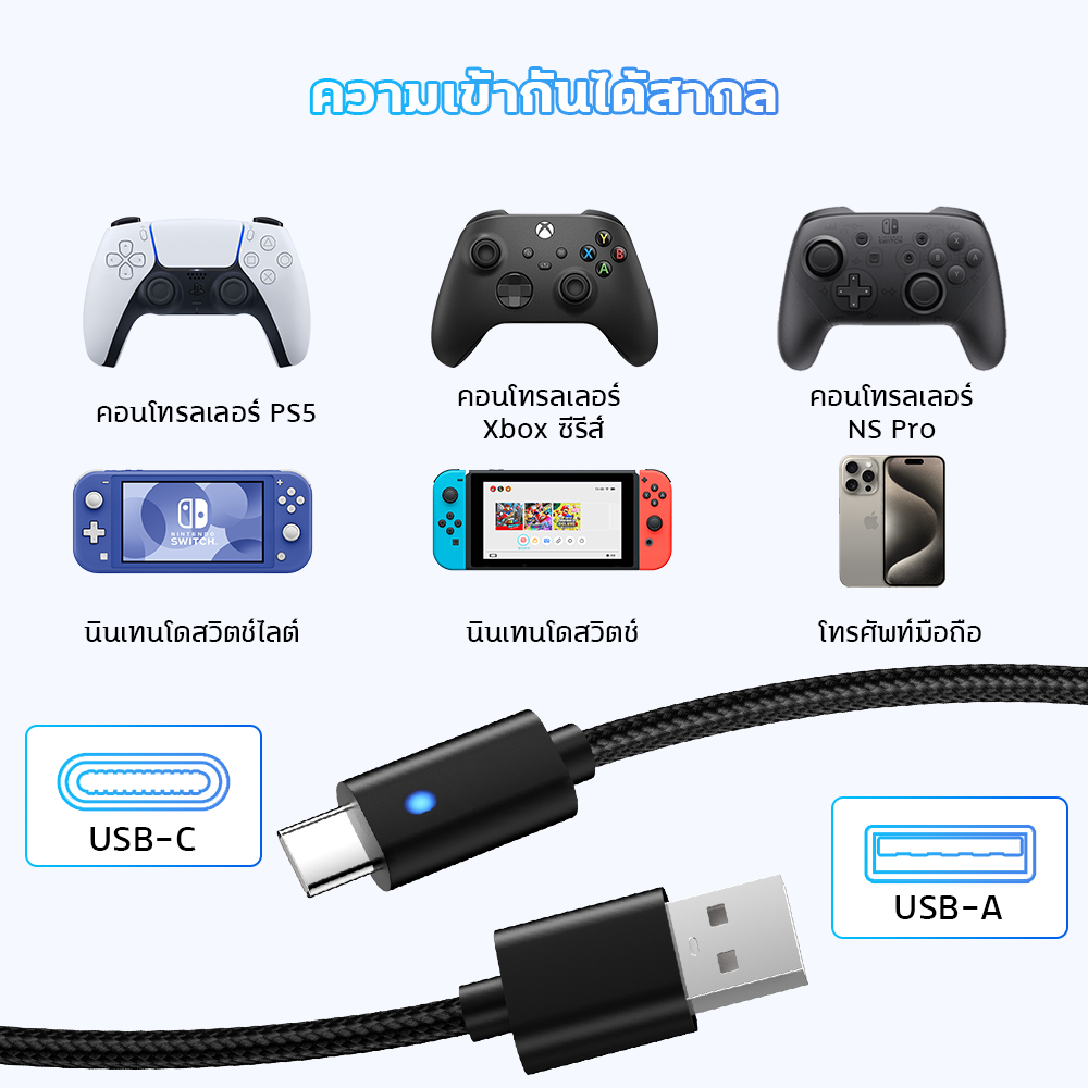 เข้ากันได้กับ PS5, PS5 ControllerPS5 slim และคอนโทรลเลอร์ Xbox Series X/Xbox Series S/Switch Pro โทรศัพท์มือถือและอุปกรณ์อื่นๆ ที่มีอินเทอร์เฟซ USB C (Type C)
