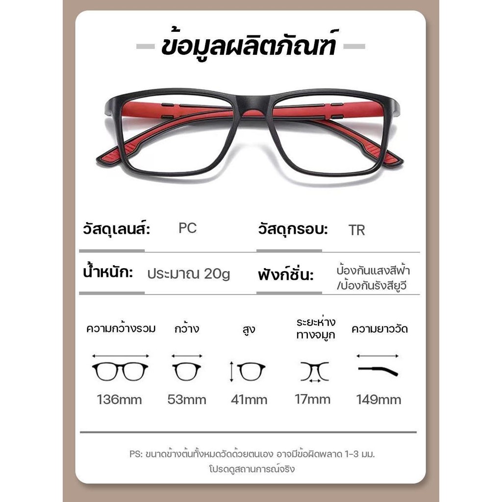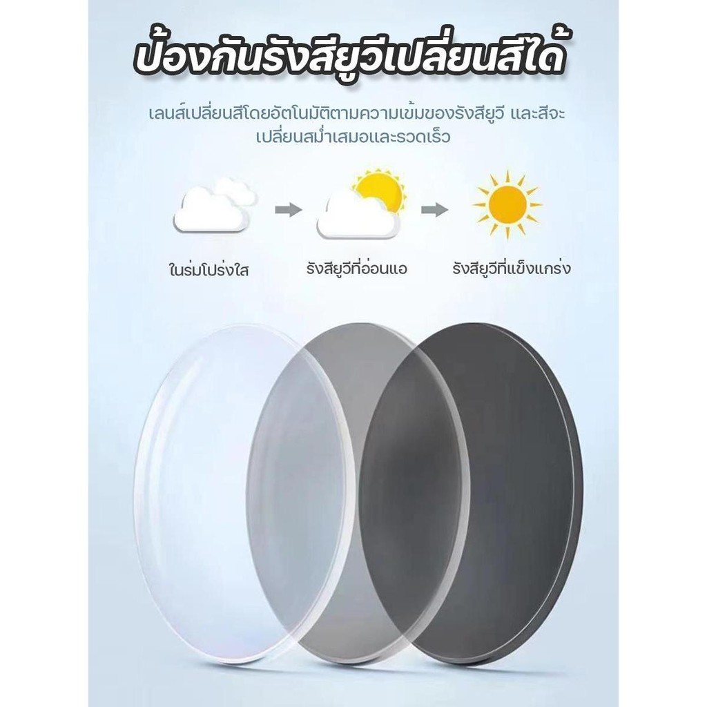 เลนส์บลูบล็อคออโต้ = กรองแสงสีฟ้า+ออกแดดเปลี่ยนสีคลิปถ่ายจากสินค้าจริง : ในคลิปเป็นการทดสอบประสิทธิภาพการกรองแสงของเลนส์บลูฯออโต้ จะพบว่า เลนส์กรองแสง UV ได้ในระดับ 400 NM. (เทียบเท่าเลนส์กันแดด) และกรองแสงสีฟ้าจากคอมฯ/มือถือได้เป็นอย่างดี โดยแสงเลเซอร์สีฟ้าไม่สามารถผ่านเลนส์ได้ เมื่อเปรียบเทียบระหว่างเลนส์ธรรมดา และเลนส์บลูฯ จะเห็นว่าถ้าเป็นเลนส์ธรรมดา แสงยังคงผ่านเลนส์ได้อยู่ แต่เลนส์บลูฯ แสงเลเซอร์สีฟ้าไม่สามารถทะลุผ่านเลนส์ได้ (โดยแสงจะกระทบเฉพาะที่ผิวเลนส์เท่านั้น ไม่ทะลุไปด้านล่าง) ซึ่งเมื่อเลนส์เจอแสง เลนส์จะปรับเป็นสีดำอัตโนมัติ ดังนั้นบริเวณที่เลนส์ถูกแสงเลเซอร์ยิงผ่านเลนส์ จึงเข้มขึ้นอัตโนมัติเป็นปกติของเลนส์ออโต้