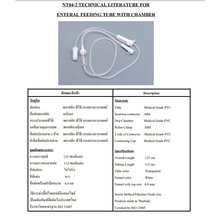 สายต่อถุงให้อาหารแบบมีกระเปราะ ออกใบกำกับได้ Feeding Tube with Chamber ออกใบกำกับได้