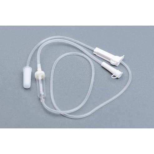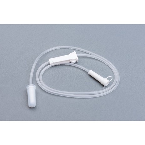 ปลายสายมีข้อต่อ ชนิดเดือย (Step Connector) ทำจากพลาสติก PVC หรือ ABS พร้อมฝาครอบป้องกันสิ่งปนเปื้อน สามารถต่อเข้ากับสายให้อาหาร (Feeding Tube)ได้