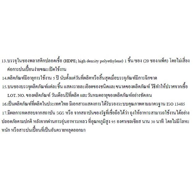 บรรจุในซองพลาสติก ซองละ 1 ชิ้น