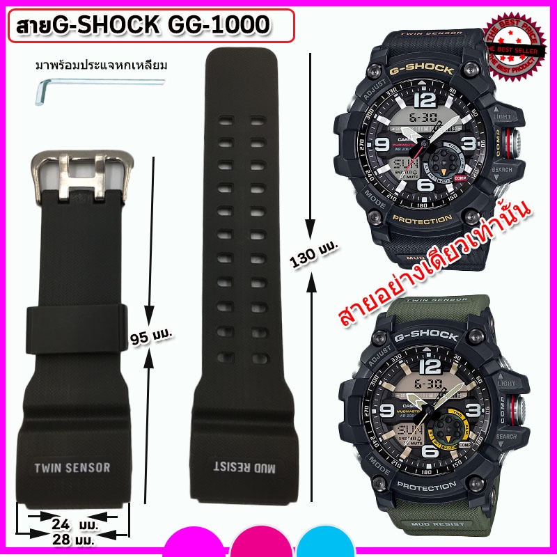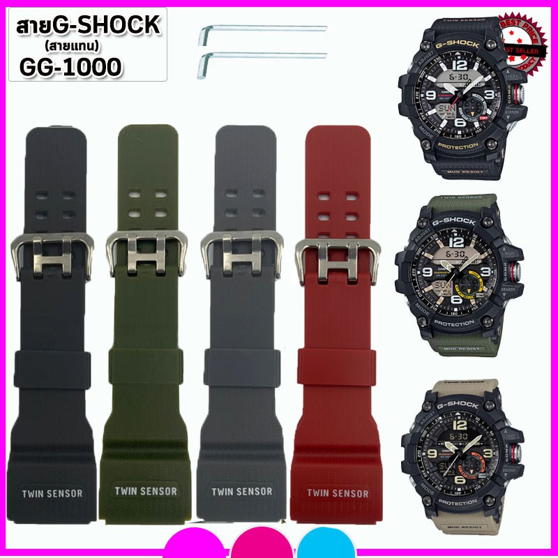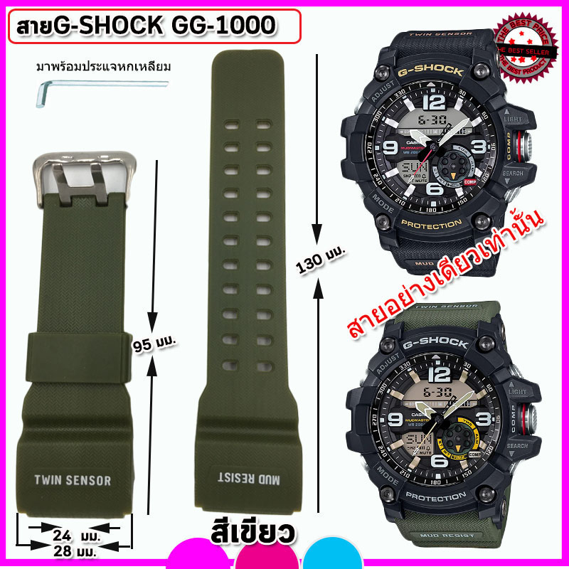 (ไม่ใช่สายแท้ ใช้เป็นสายทดแทนเท่านั้น)สายนาฬิกาจีชอร์ค G-Shock รุ่น GG-1000 สายนาฬิกาข้อมือขนาด 24 มม. สายยางสีดำด้าน สีเท่าและสีเขียว สายยางคุณภาพพรีเมี่ยมเท่ สไตล์จีชอร์ค