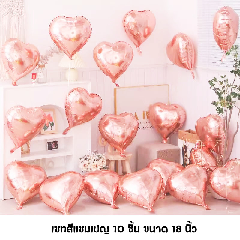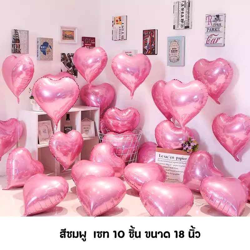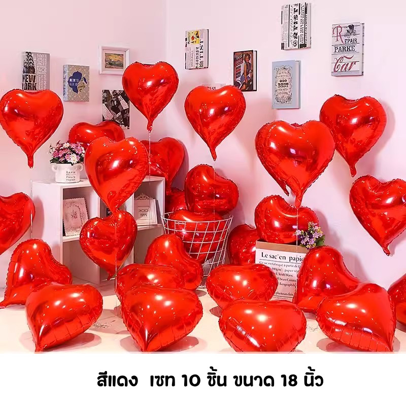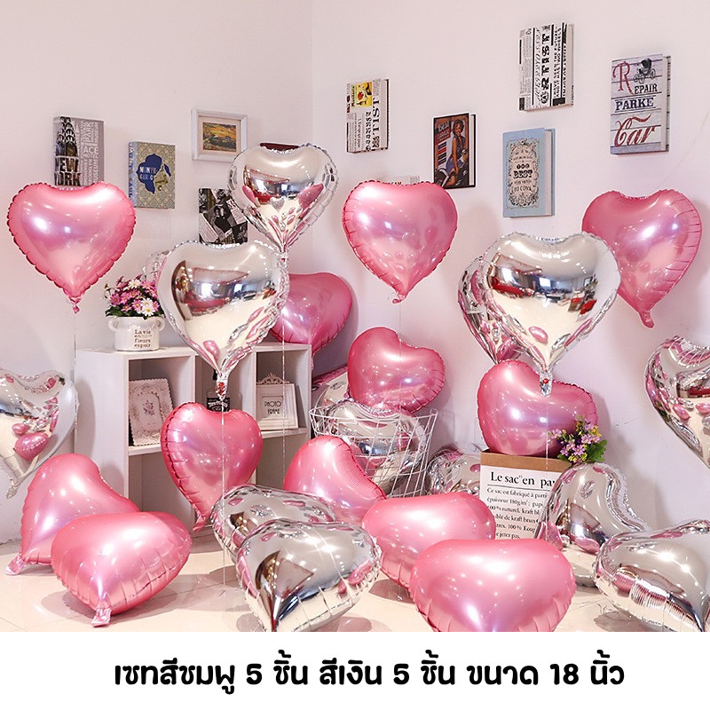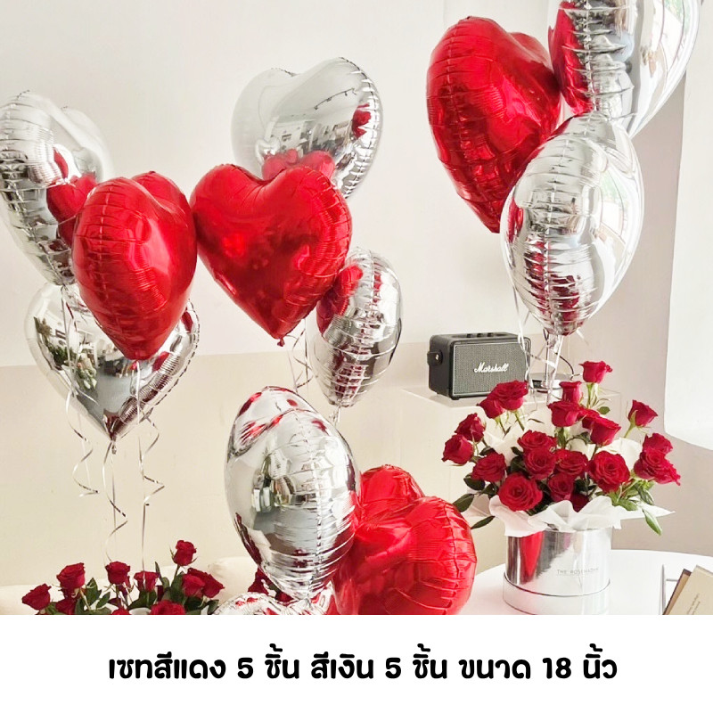 เซทลูกโป่งอลูมิเนียมฟอยล์ รูปหัวใจ ขนาด 18 นิ้ว ตกแต่งปาร์ตี้วันเกิด วันวาเลนไทน์ วันครบรอบ ❤