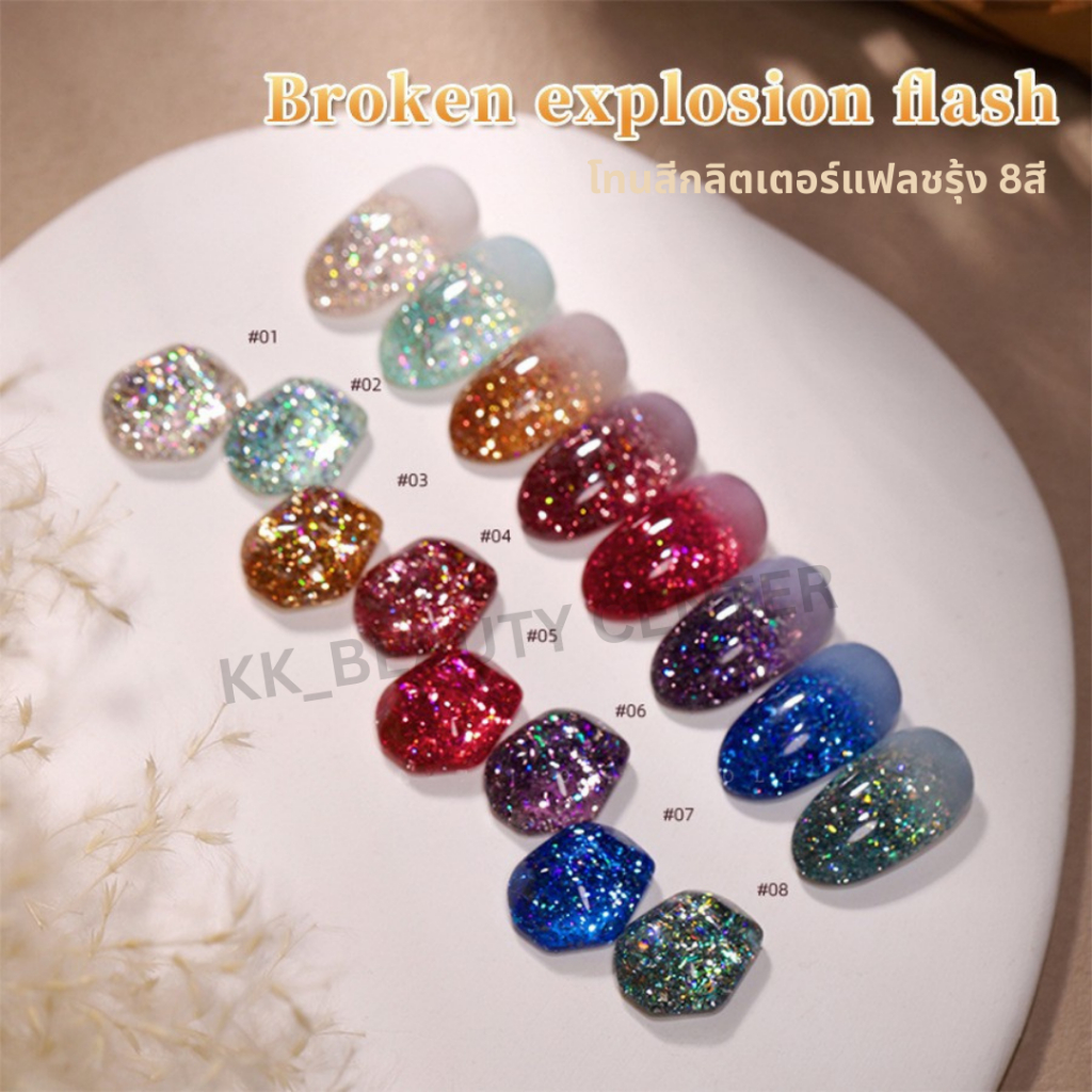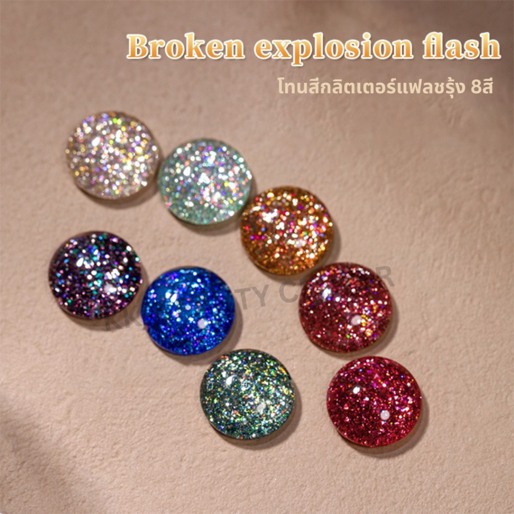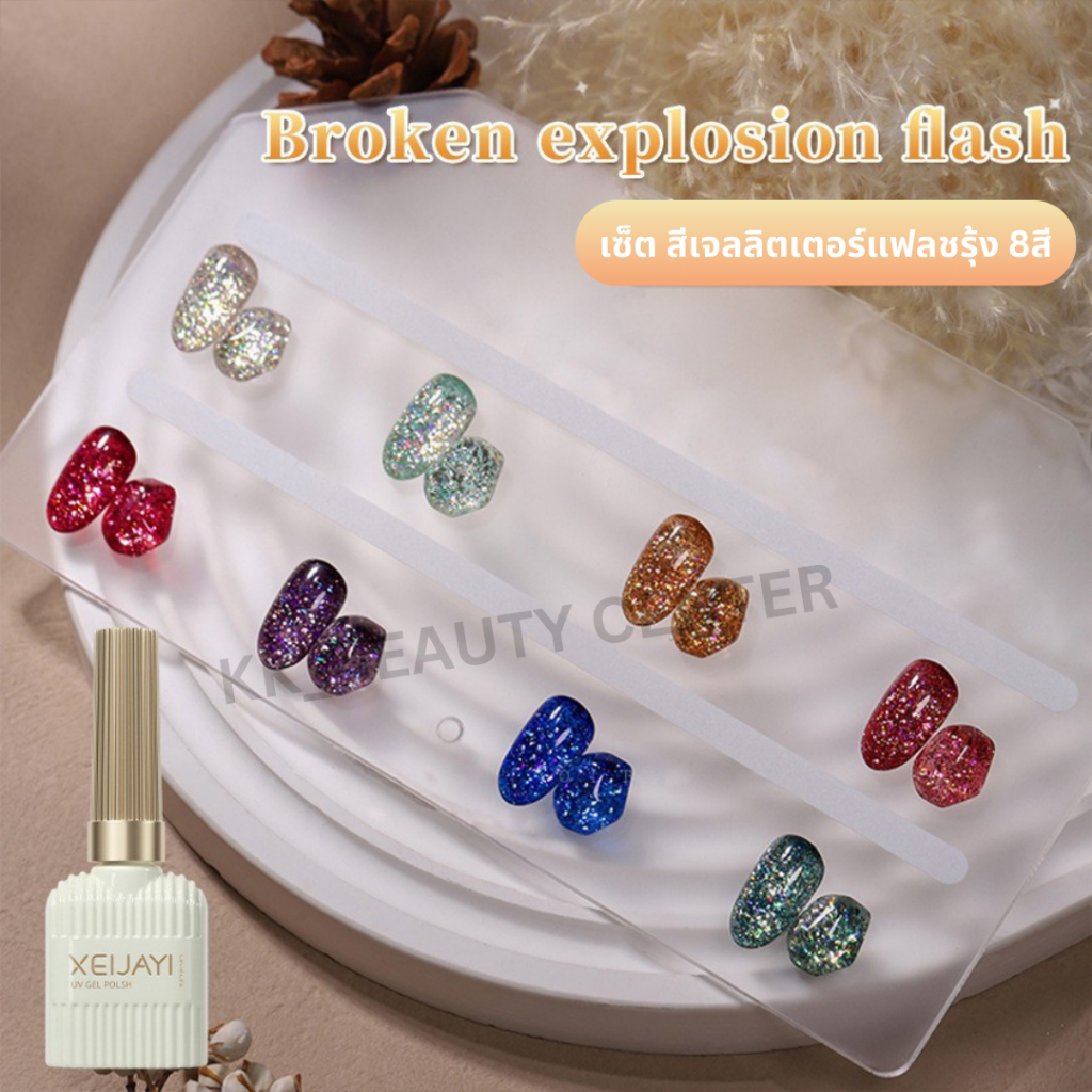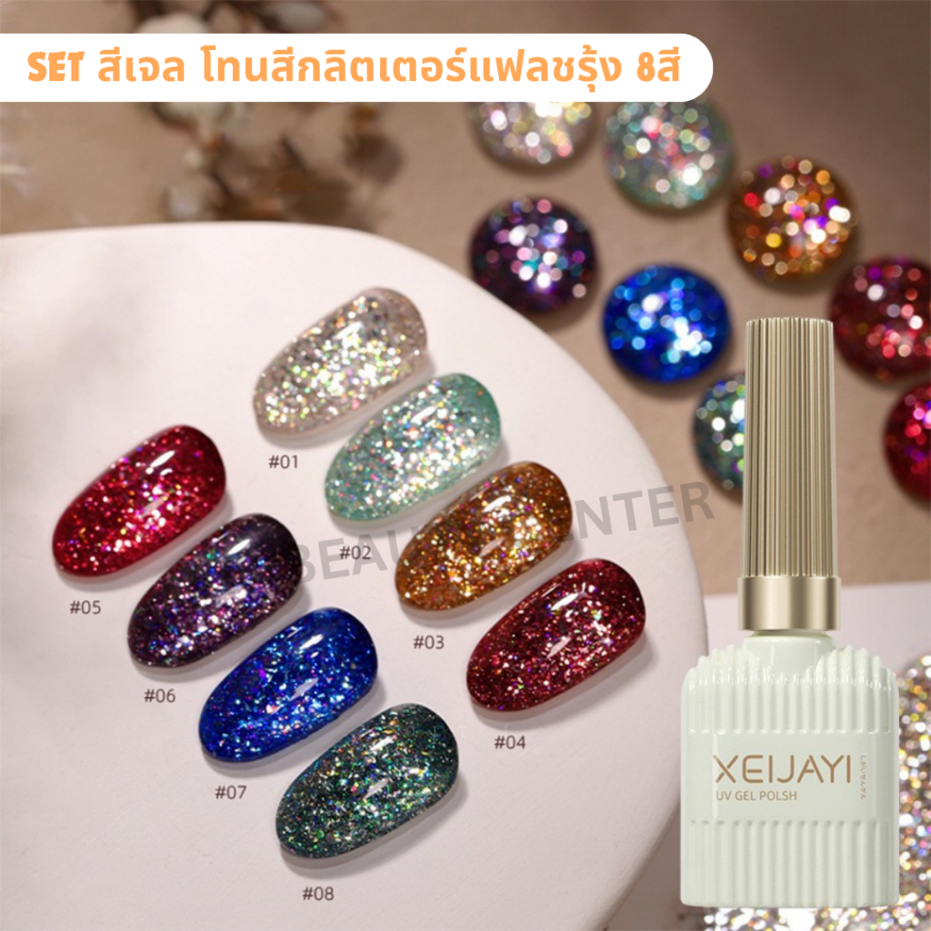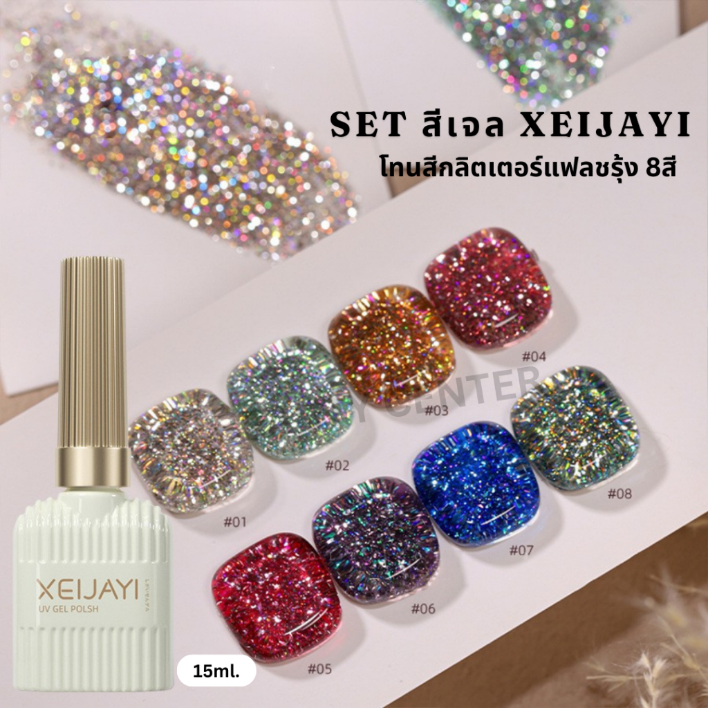 (สินค้าส่งจากไทย) SET สีเจล XEIJAYI 15ml. โทนสีกลิตเตอร์แฟลชรุ้ง กากเพชรแน่นๆ เซ็ต 8สี