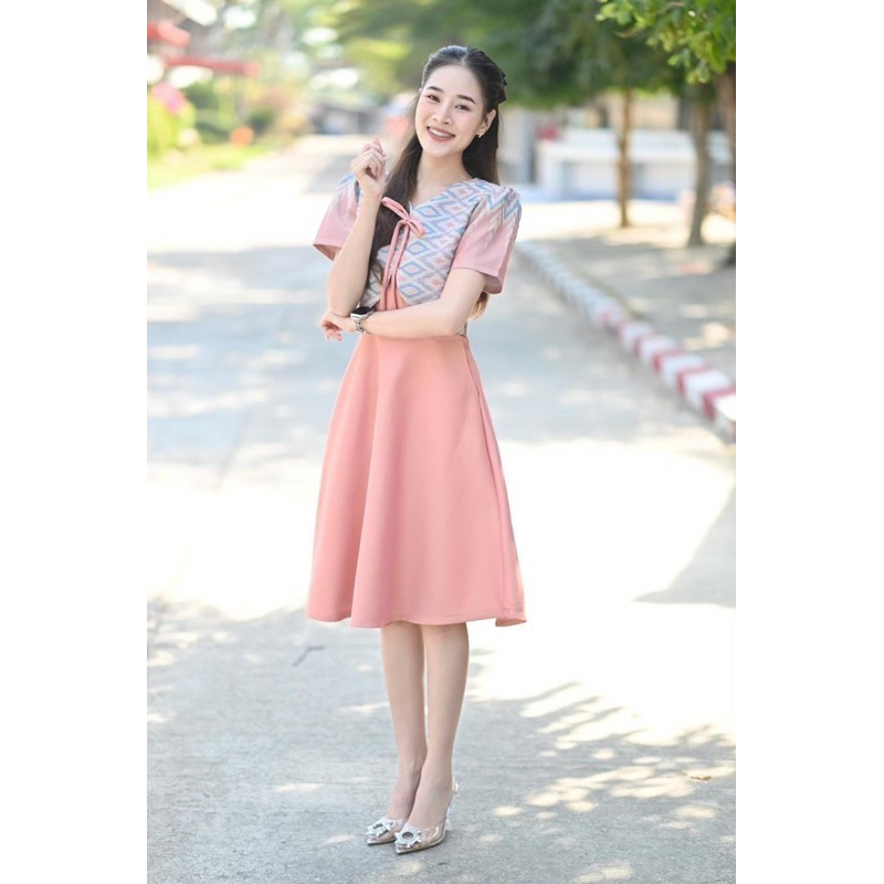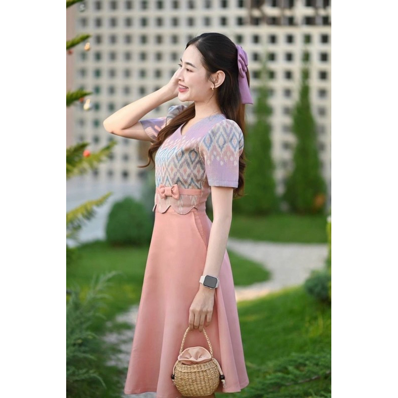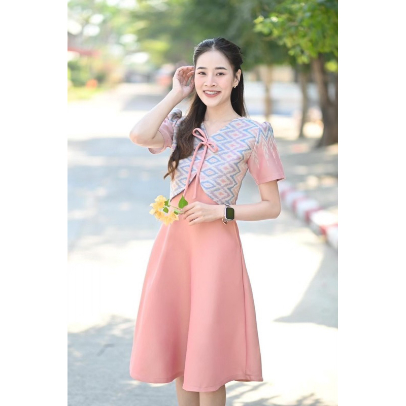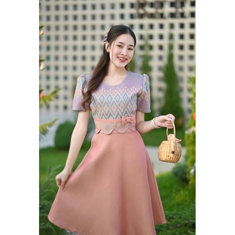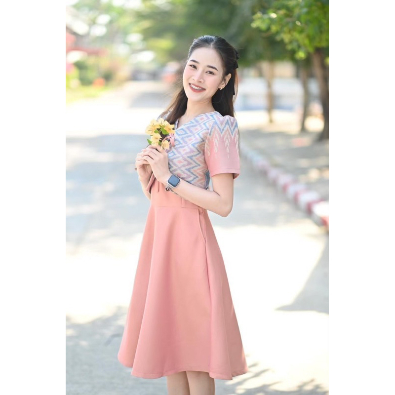 Detail. : ✅ ชุดเดรสผ้าทอลาย กระโปรงย้วย มีกระเป๋า 2 ข้างค่ะ