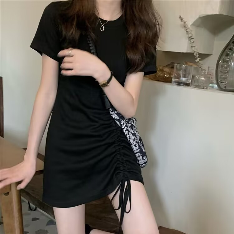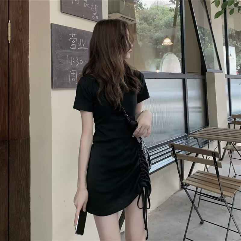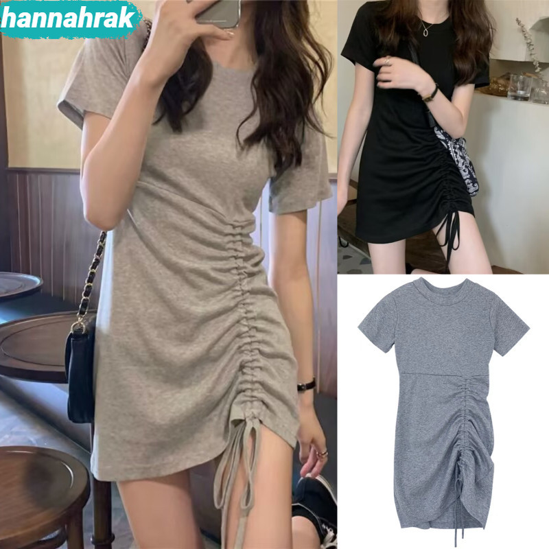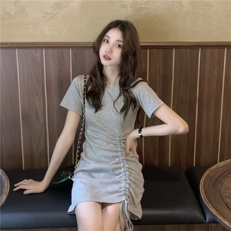 (ส่งจากกรุงเทพฯ)ชุดเดรสแขนสั้น รูดข้างเนื้อผ้าใส่สบายเวอร์ ตัวเลือกสีดำสีเทา