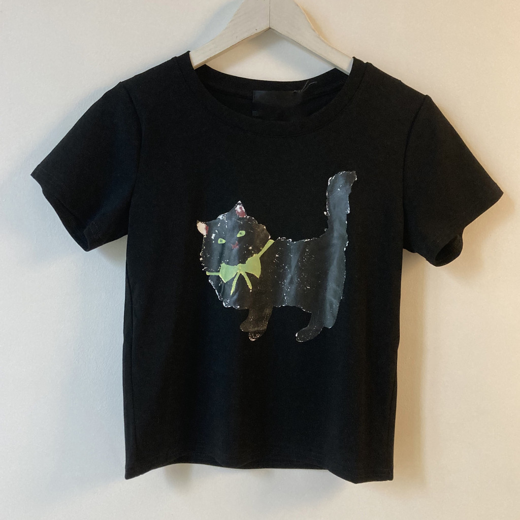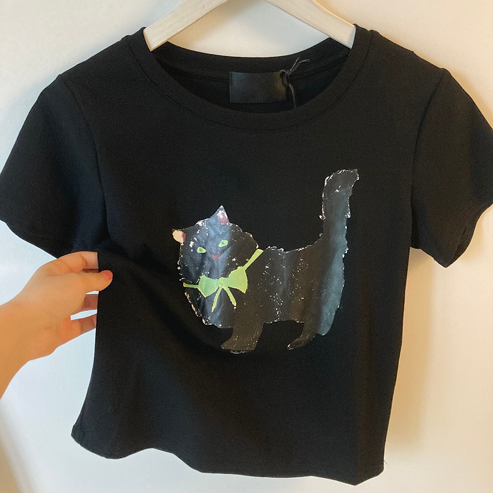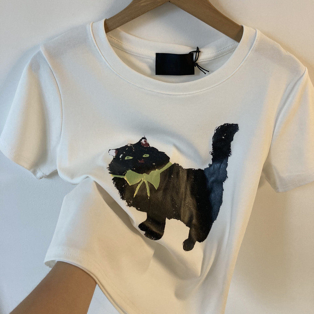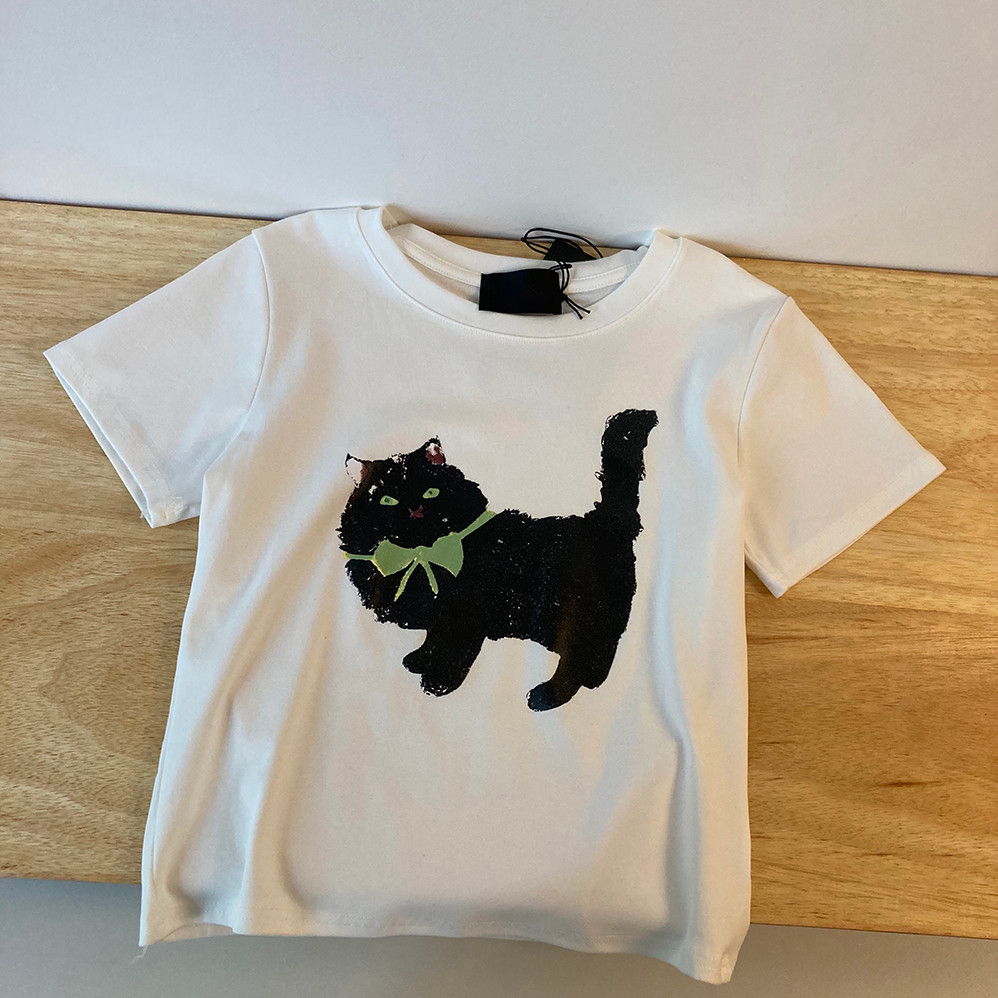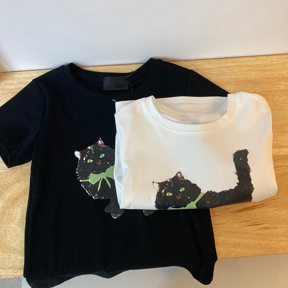 [ส่งจากโรงงาน]ออก24ชั่วโมง OOOK เสื้อยืดผ้าฝ้ายพิมพ์ลายแมวน่ารักแขนสั้น