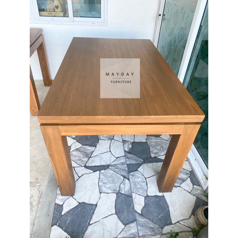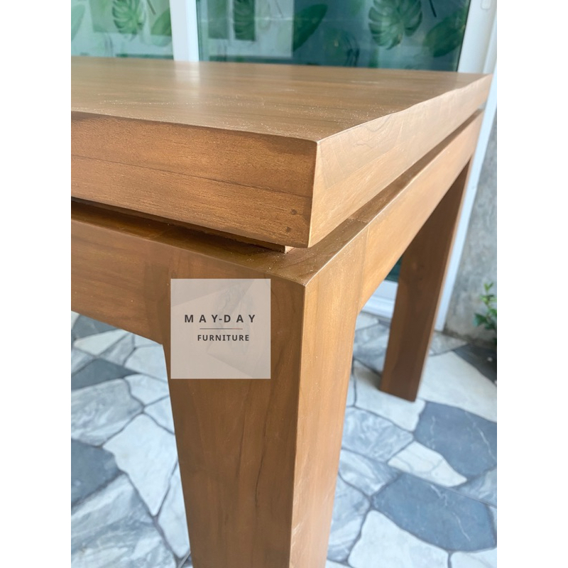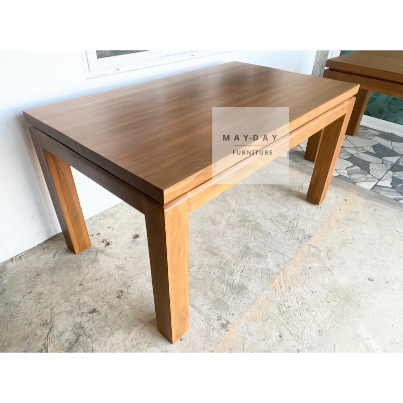 โต๊ะไม้สักทอง สไตล์โมเดิร์น เอกลักษณ์ของรุ่นนี้คือ ท็อปโต๊ะจะลอยเหนือขา ดูแตกต่างและทันสมัย ท็อปหนา ขาใหญ่ ดามขา4 มุม รวมถึงใต้โต๊ะ แข็งแรงทนทานค่ะ