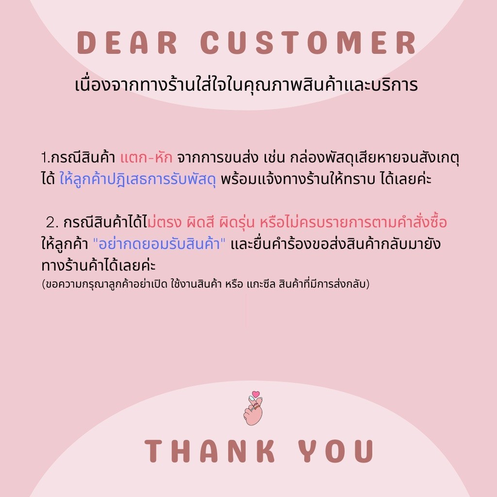 ** ทั้งนี้หากมีการกดรับสินค้าแล้ว ขอไม่รับผิดชอบใดๆ ทุกกรณีค่ะ **