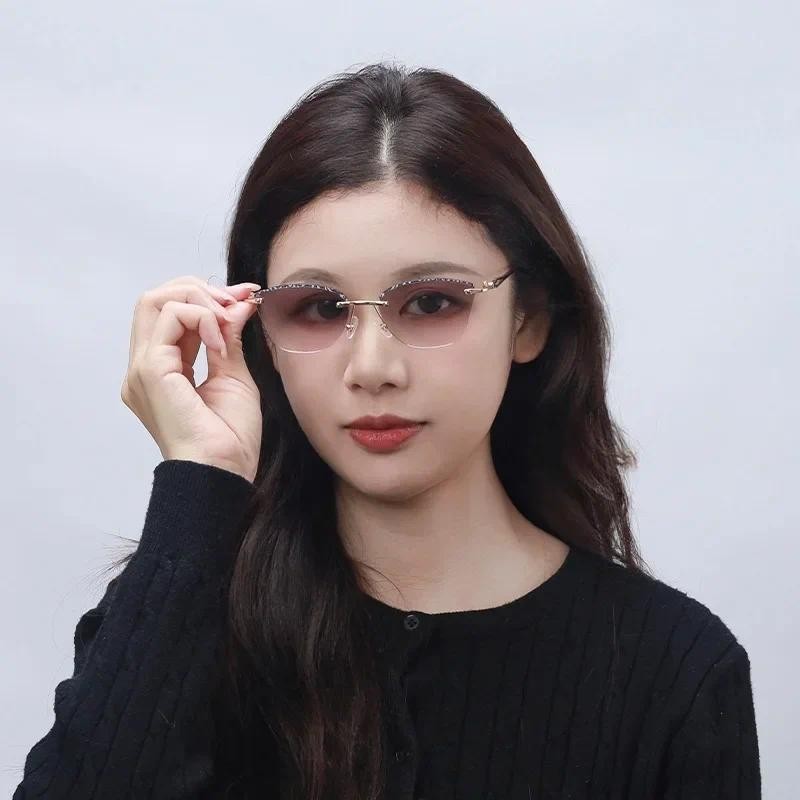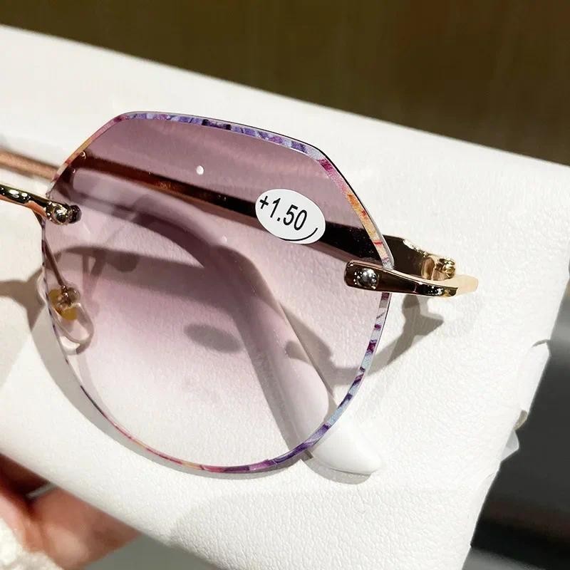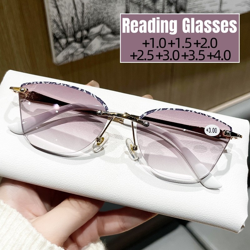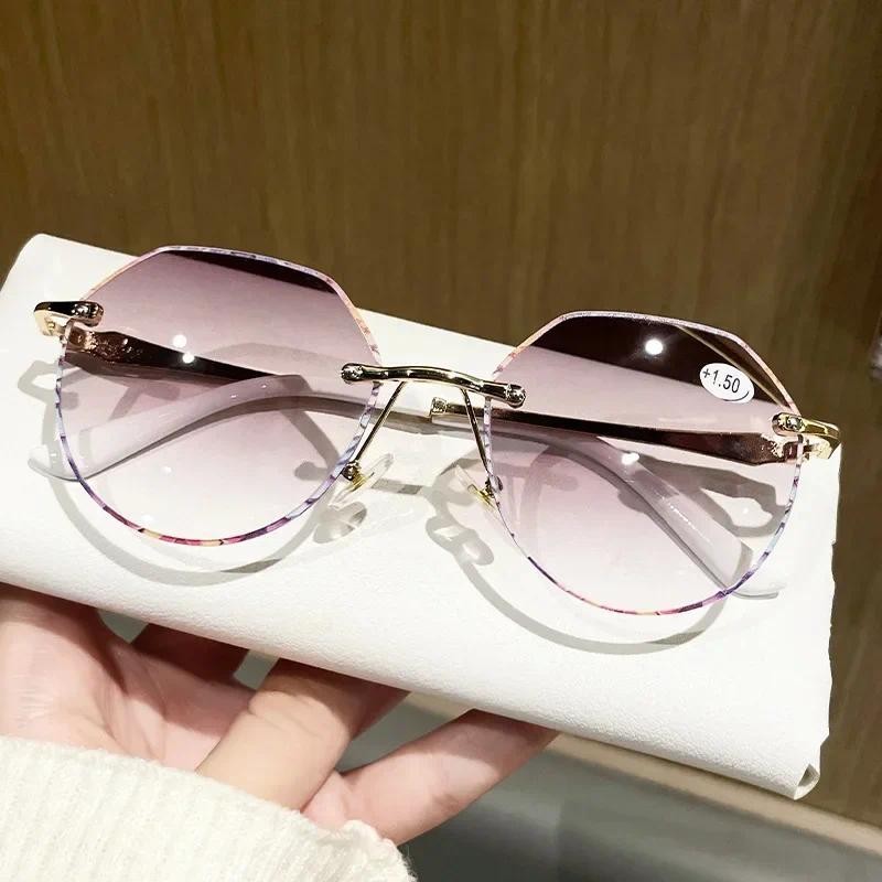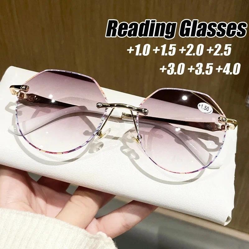 หรูหราแว่นตาอ่านหนังสือไม่มีขอบสําหรับผู้หญิงแฟชั่นแว่นตาสายตายาว Unisex Plus Diopter Anti-blue Light แว่นตาตามใบสั่งยา