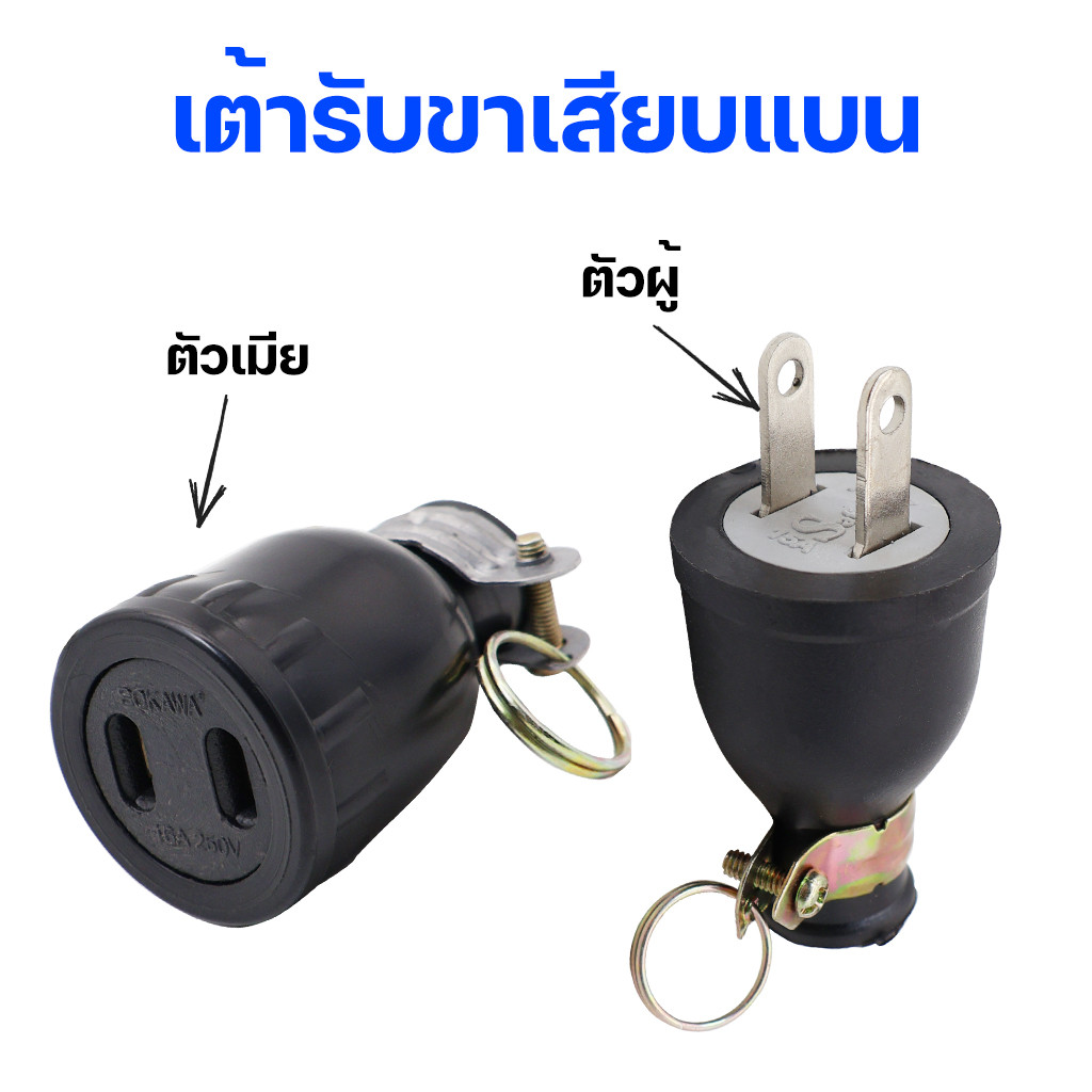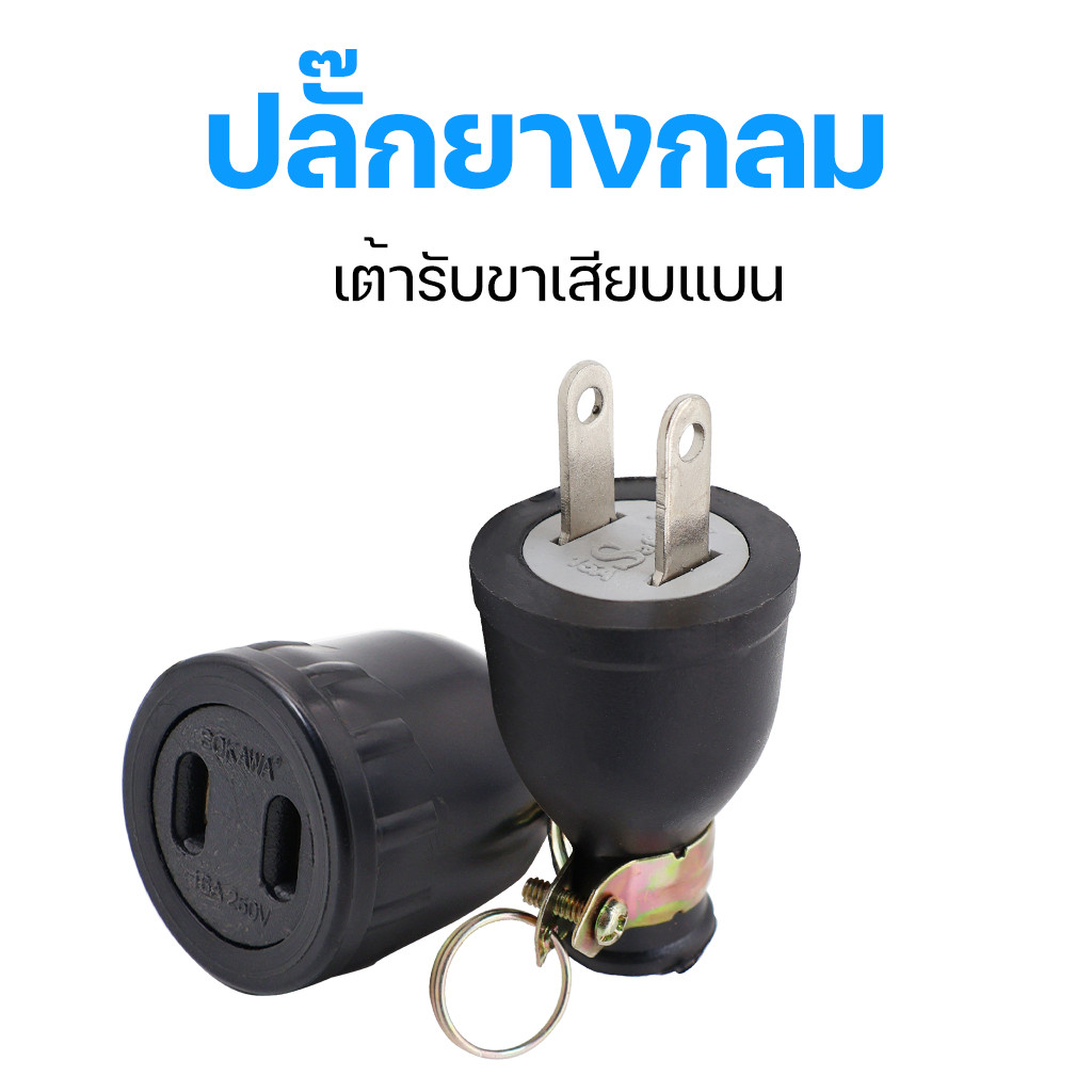ปลั๊กยาง ปลั๊กยางกลมแบบเสียบ ปลั๊กเสียบขาแบน ปลั๊กตัวผู้ ปลั๊กตัวเมีย เต้ารับ ปลั๊ก 2 ขา รองรับกระแสไฟสูงสุด 16A 250V