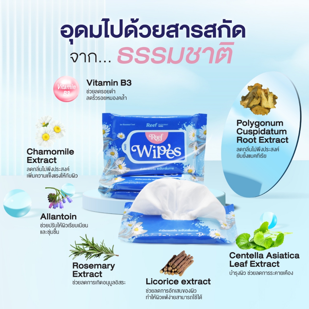 รีฟ ดีโอดอแรนท์ ไวพ์ ผ้าเปียกระงับกลิ่นกาย ลดเหงื่อ REEF DEODORANT WIPES