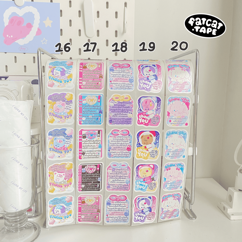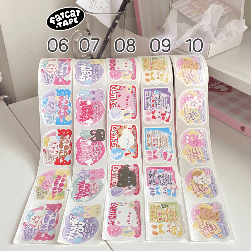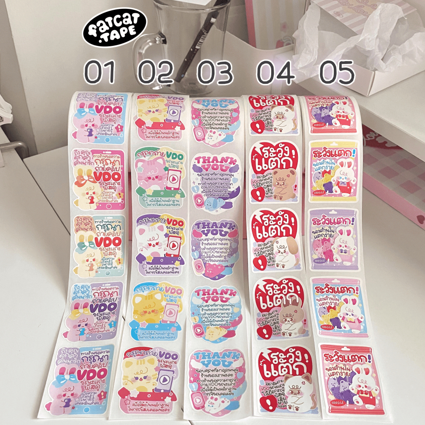 (อัพเดทลาย) สติ๊กเกอร์250ดวง สติ๊กเกอร์ขอบคุณลายน่ารัก สติ๊กเอร์แปะกล่องพัสดุ สติ๊กเกอร์fatcat สติ๊กเกอร์ขอคะเเนน