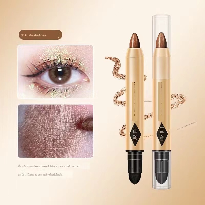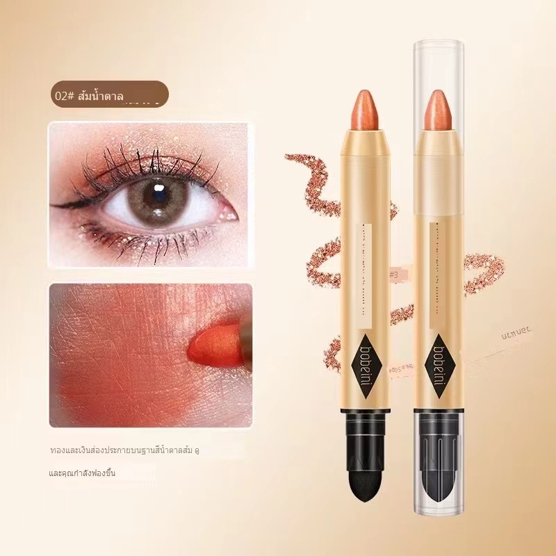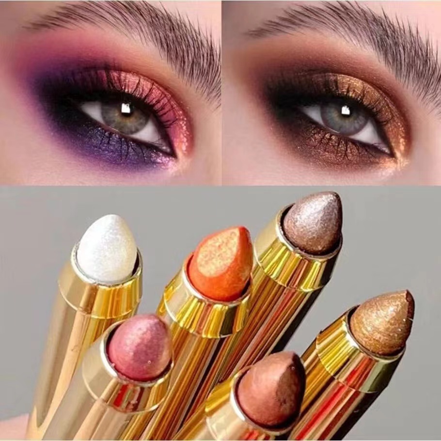 การออกแบบที่ไม่เหมือนใคร: อายแชโดว์แท่งนี้เป็นแท่งอายแชโดว์สองในหนึ่งเดียวที่มีหัวคู่ ประกอบด้วยประกายสองสีประกอบด้วยสีประกายสองชนิด เลือกสีที่เหมาะสมตามโอกาสต่างๆ