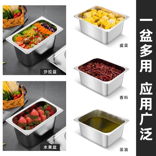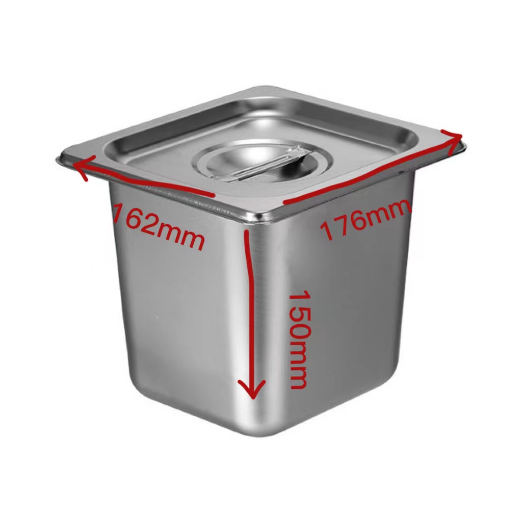 อ่างอาหาร 1/6 ทรงลึก 15ซม. รวมถึงกรอบสแตนเลสหนา แบบก้นกรวง (มี 6 ใบ พร้อมกรอบ )