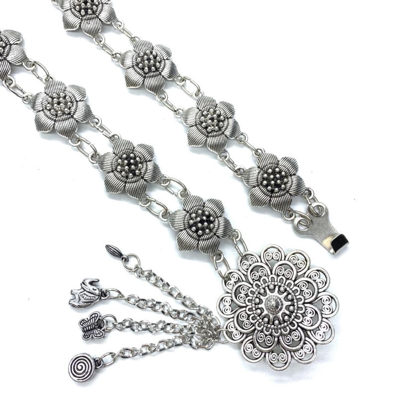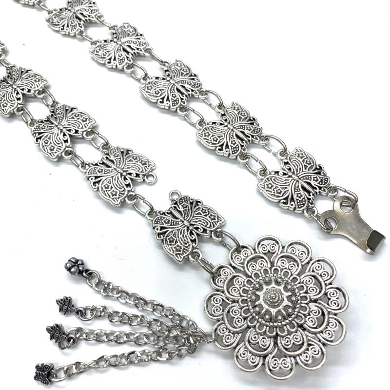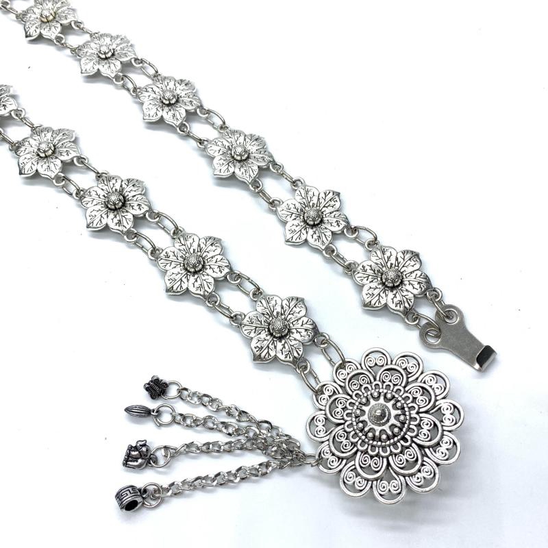 เข็มขัดอีสาน Vintage jewelry ชุดล้านนาไท ลายดอกไม้ เข็มขัด เงินโบราณ
