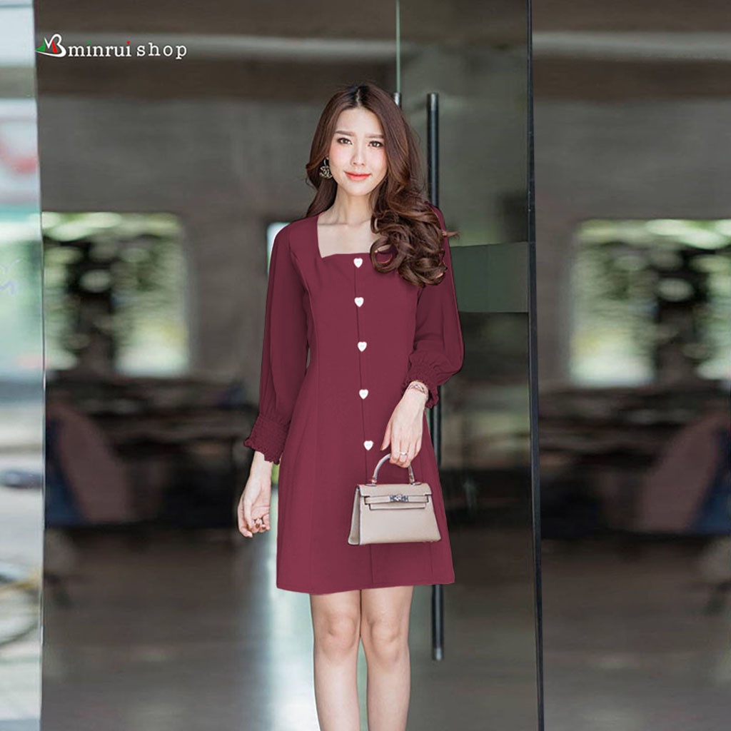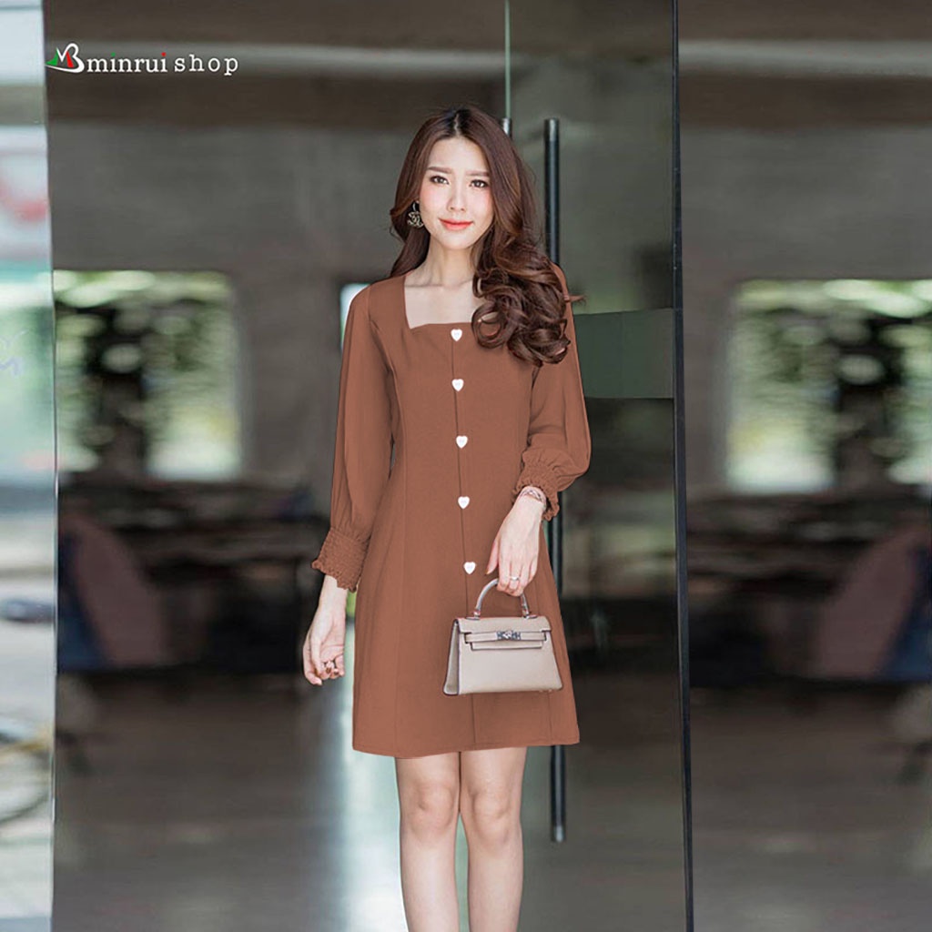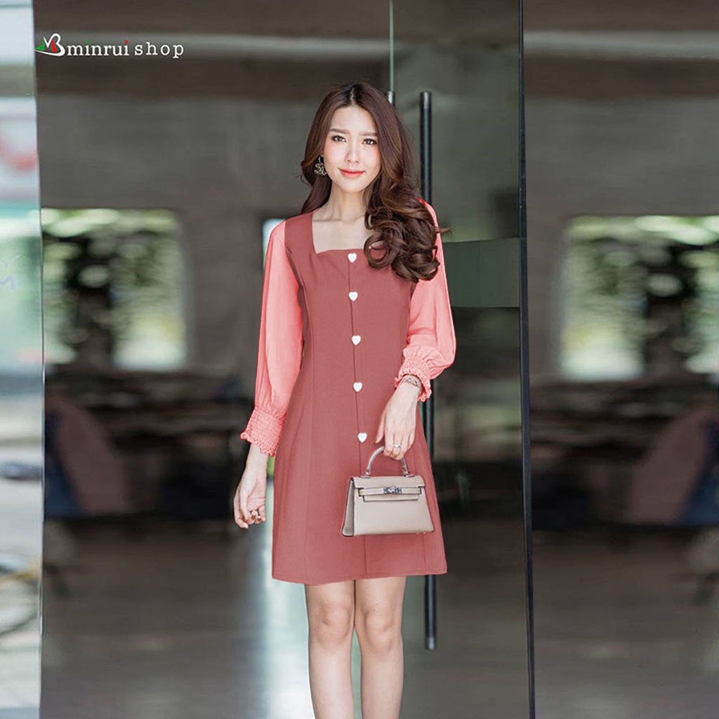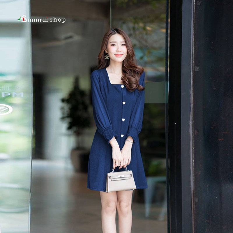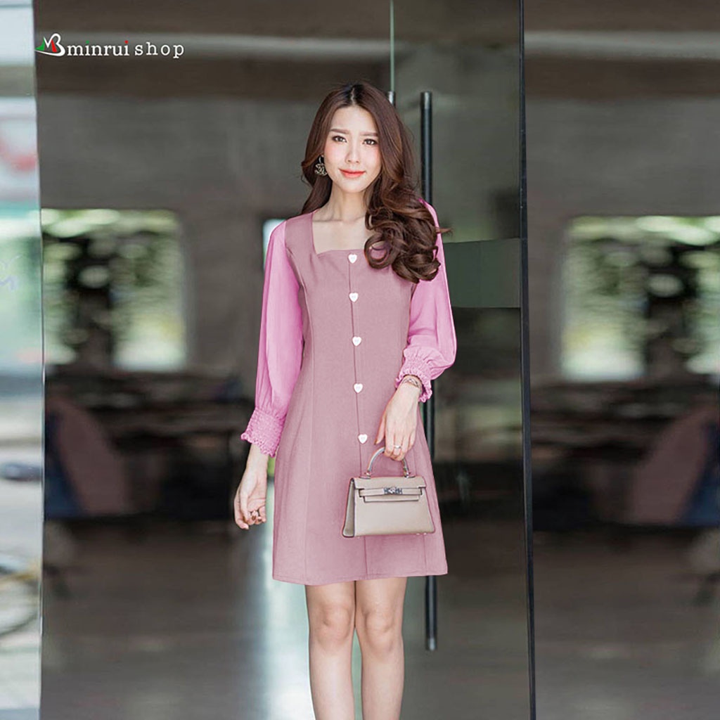 เดรสผ้าฮานาโกะและผ้าซาร่าแต่งแขนชีฟองแขนยาวปลายแขนจั้มสม้อค สวยเรียบหรูสุดๆเลย