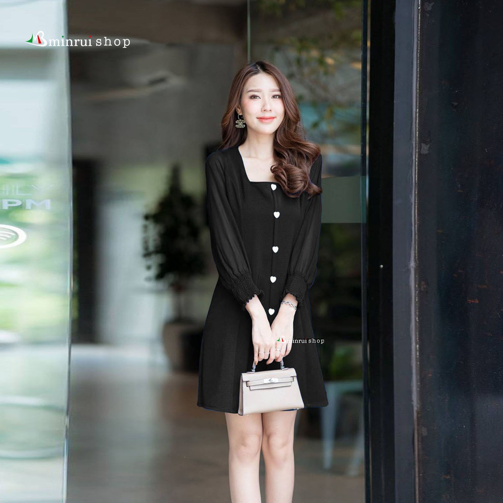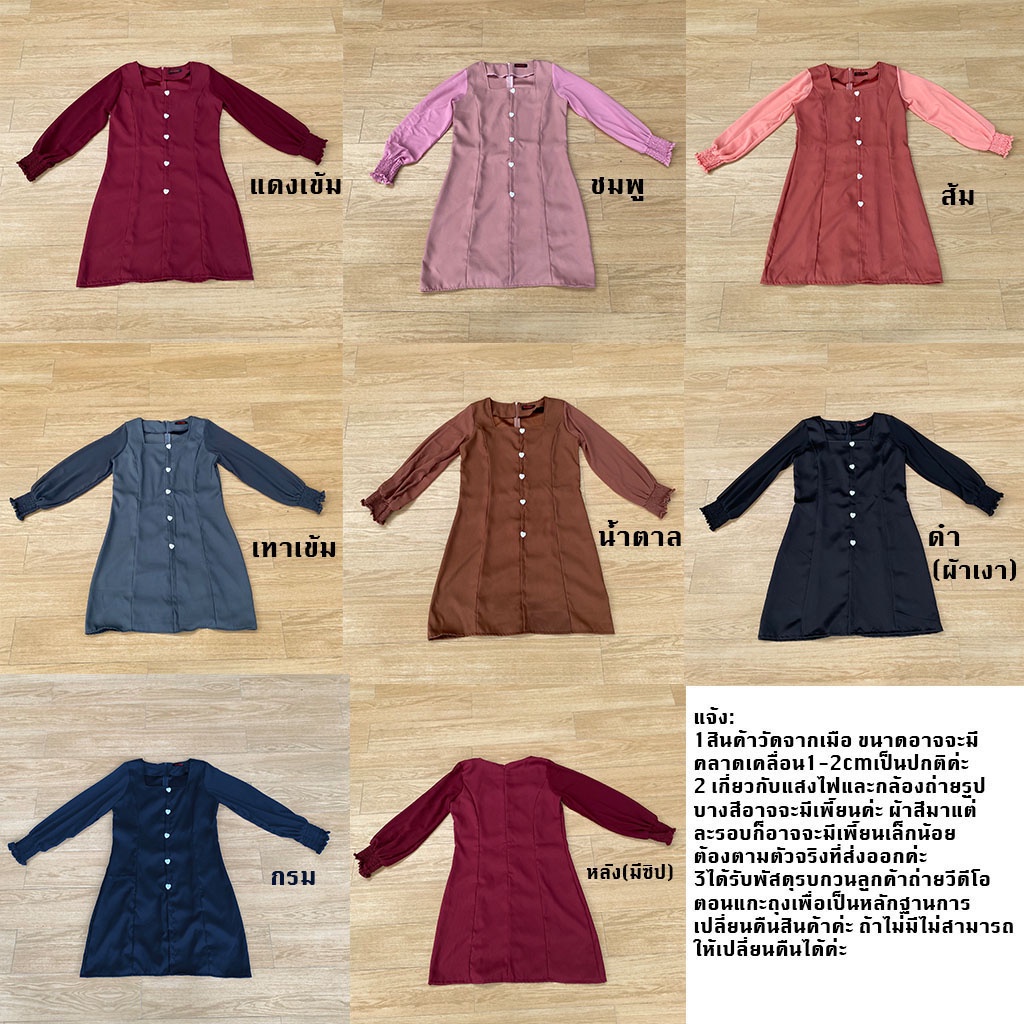 เดรสผ้าฮานาโกะแต่งแขนชีฟองแขนยาวปลายแขนจั้มสม้อค อก36นิ้ว เอว32นิ้ว สะโพก40นิ้วS273