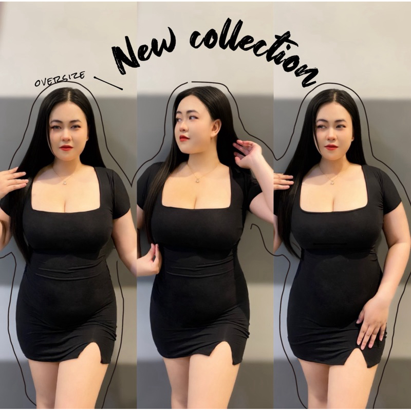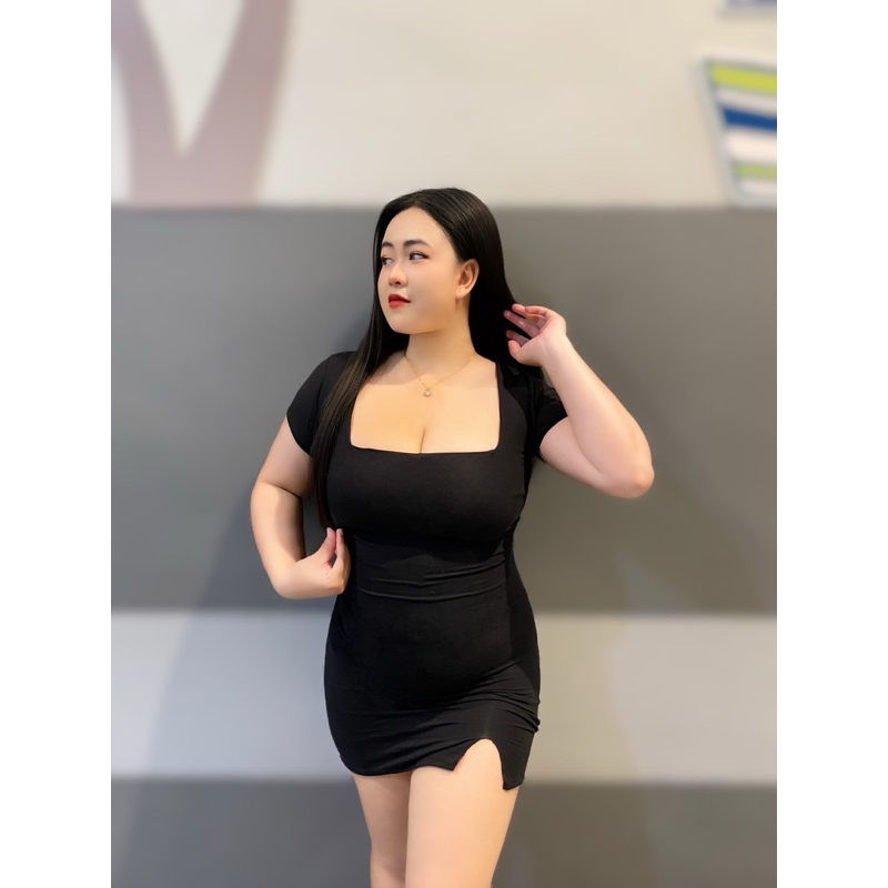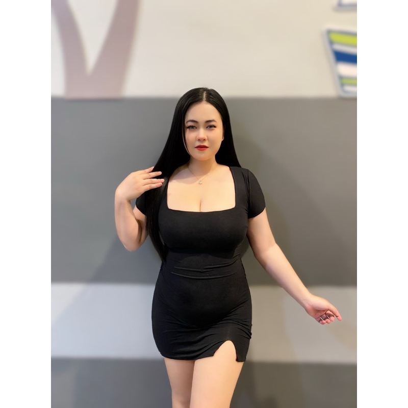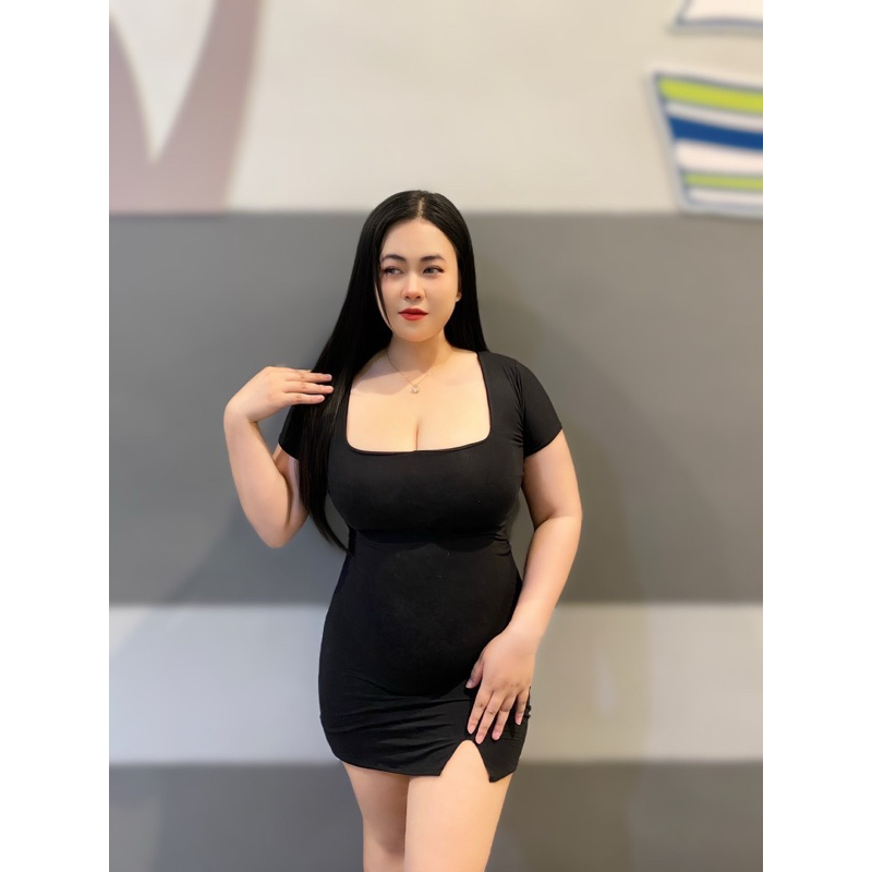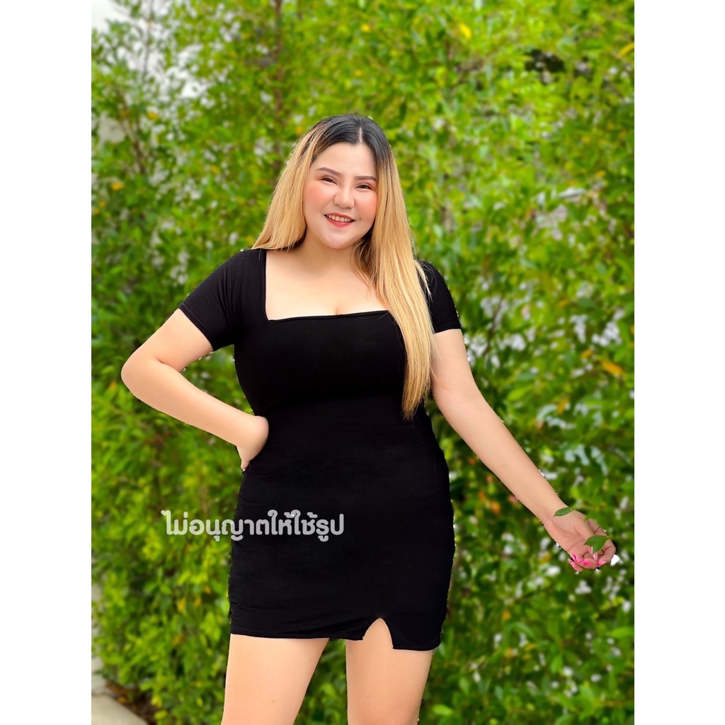 เดรสสาวอวบ รุ่น คอเหลี่ยม ผ่าหน้า