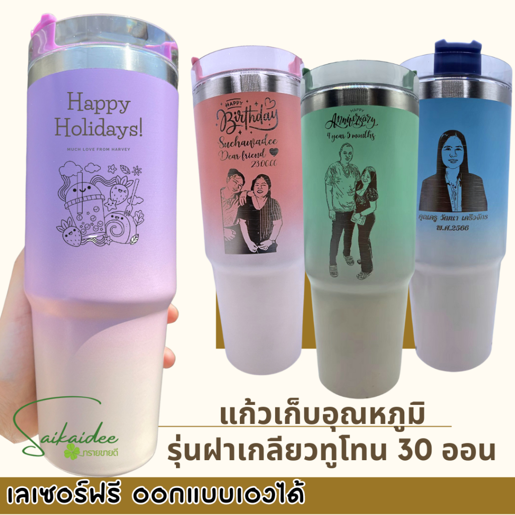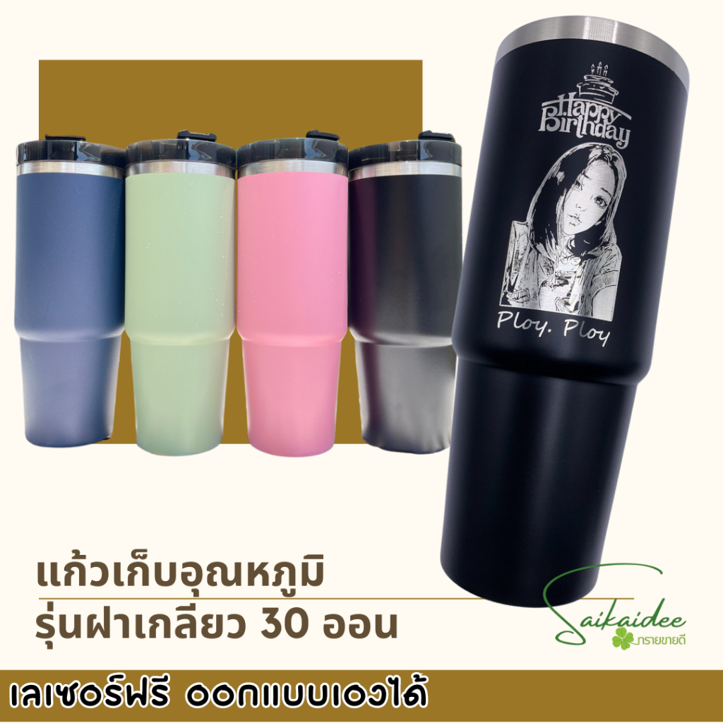 [เลเซอร์1ด้าน] แก้วเก็บอุณหภูมิขนาด30ออน เก็บได้น๊านนาน พร้อมเลเซอร์ ใส่รุป ข้อความ ออกแบบเองได้