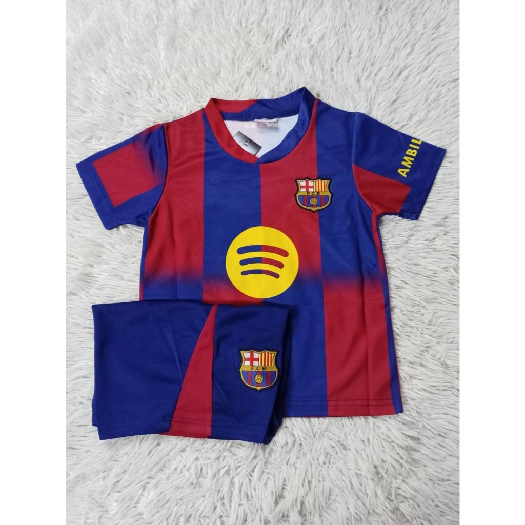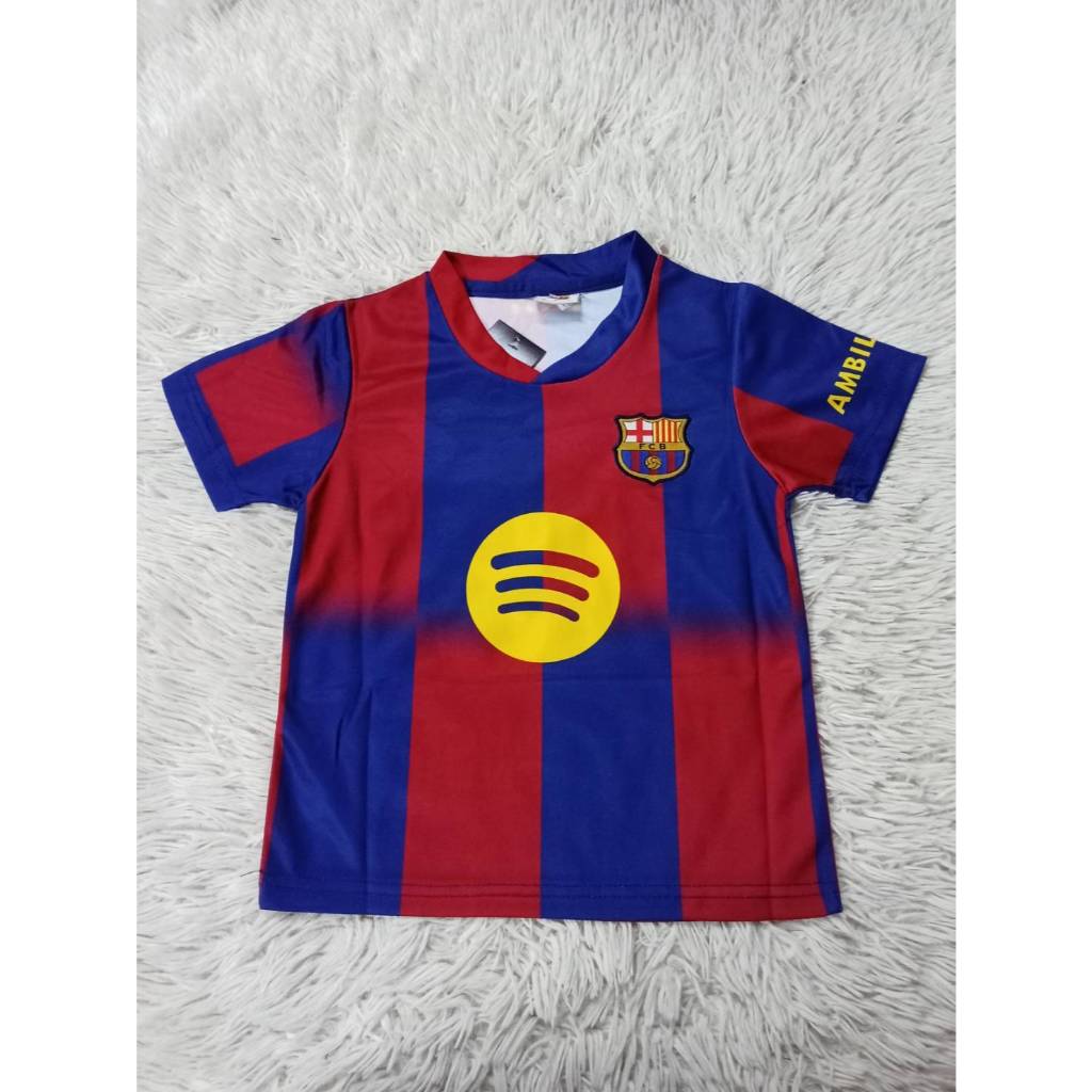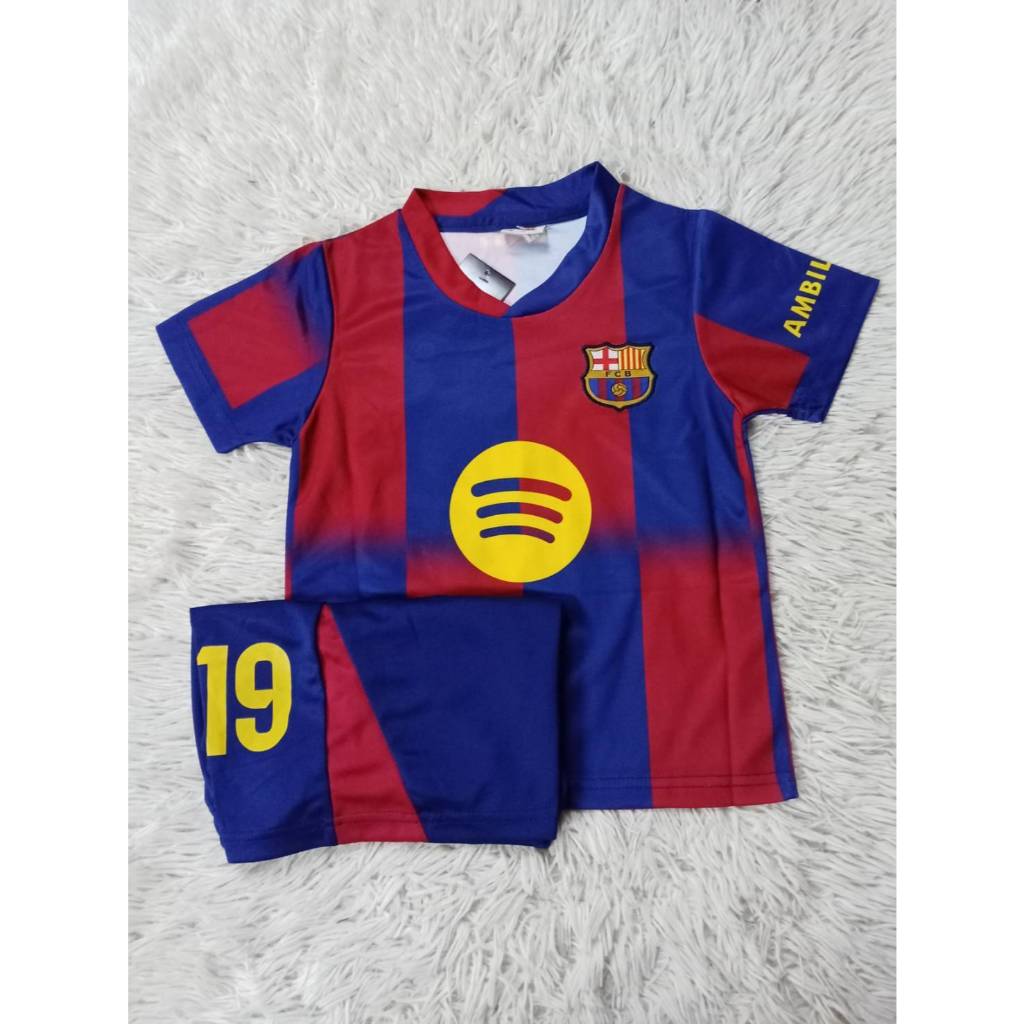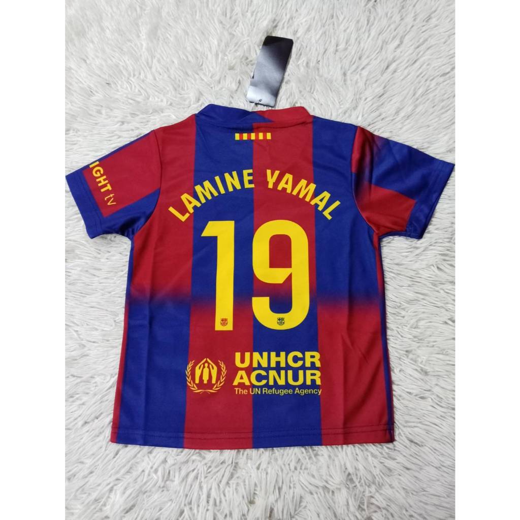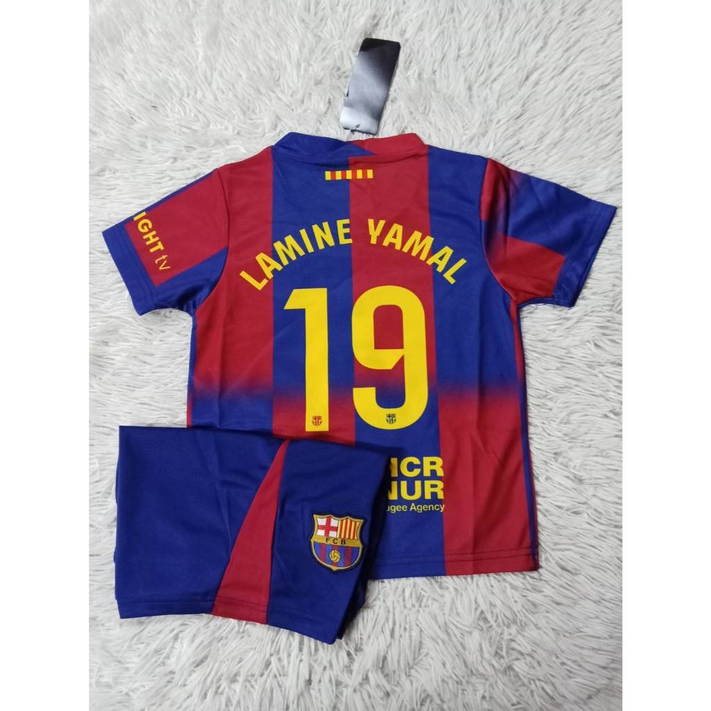 เสื้อกีฬาแขนสั้นเด็ก ทีมบาร์เซโลน่าเบอร์19ชื่อลามีนยามาล ปี2025-2026ใหม่ล่าสุด เสื้อ+กางเกง