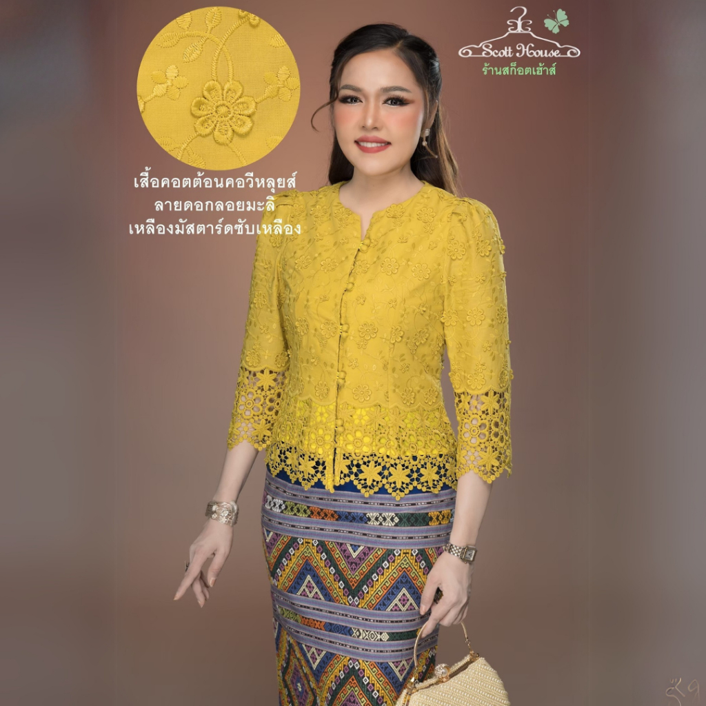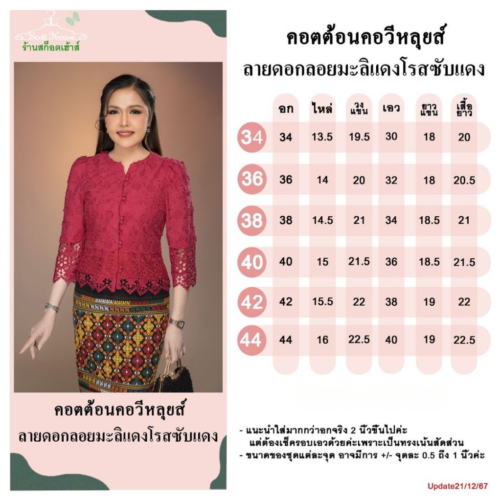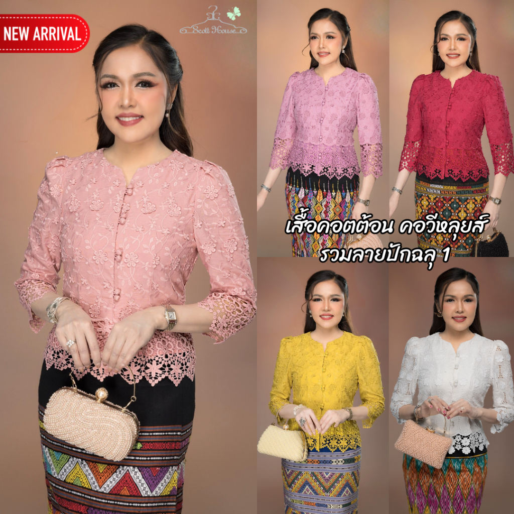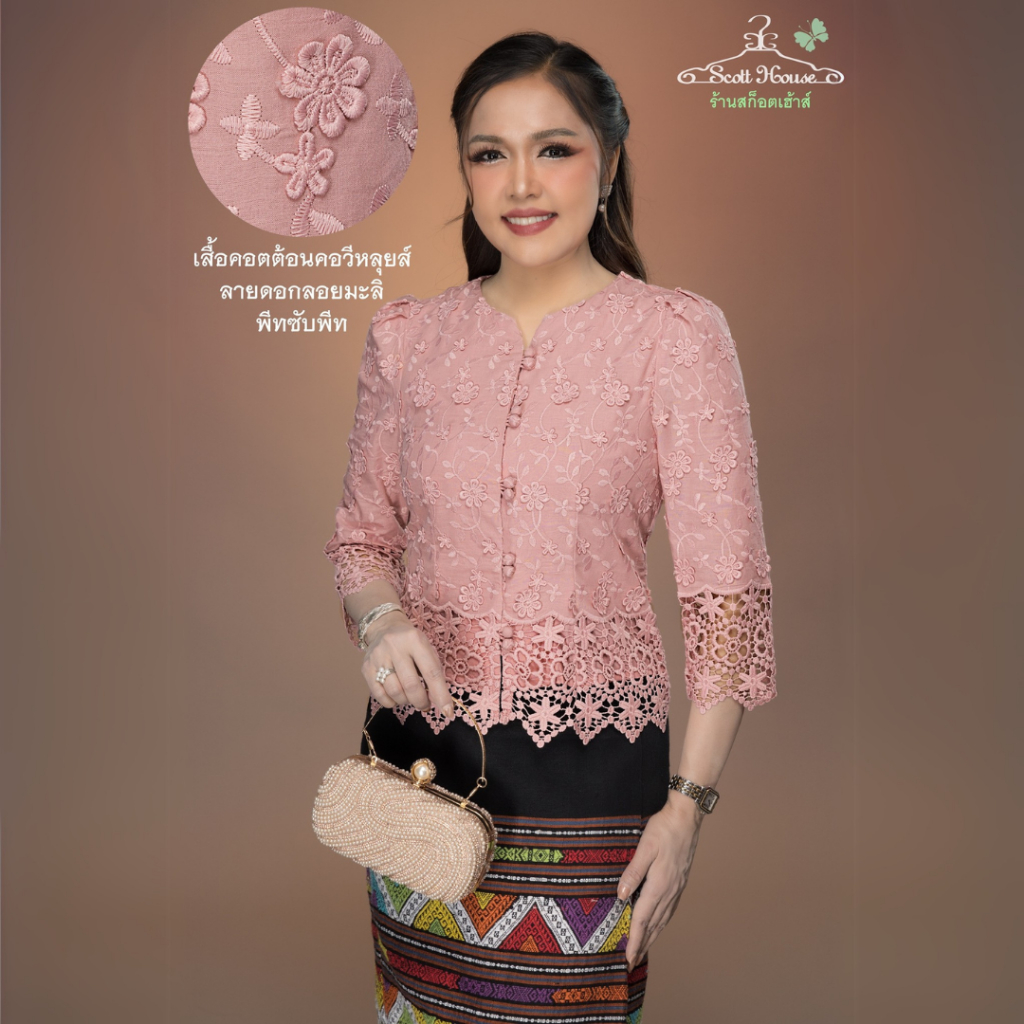 ” เสื้อคอตต้อน คอวีหลุยส์ ” ผ้าปักฉลุเพิ่มดอกลอย เกรดพรีเมียม