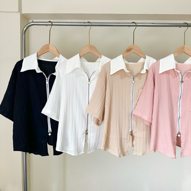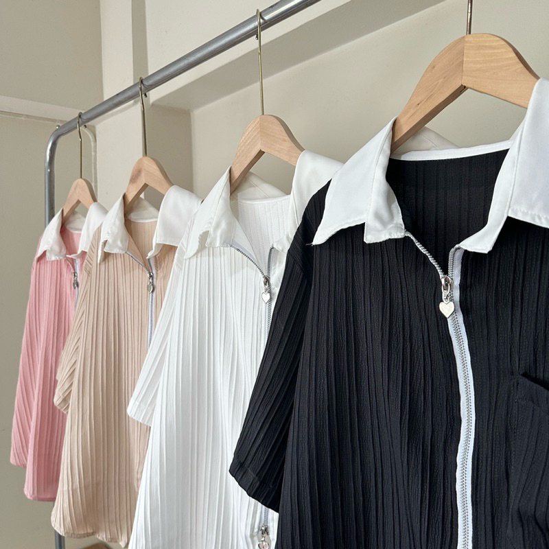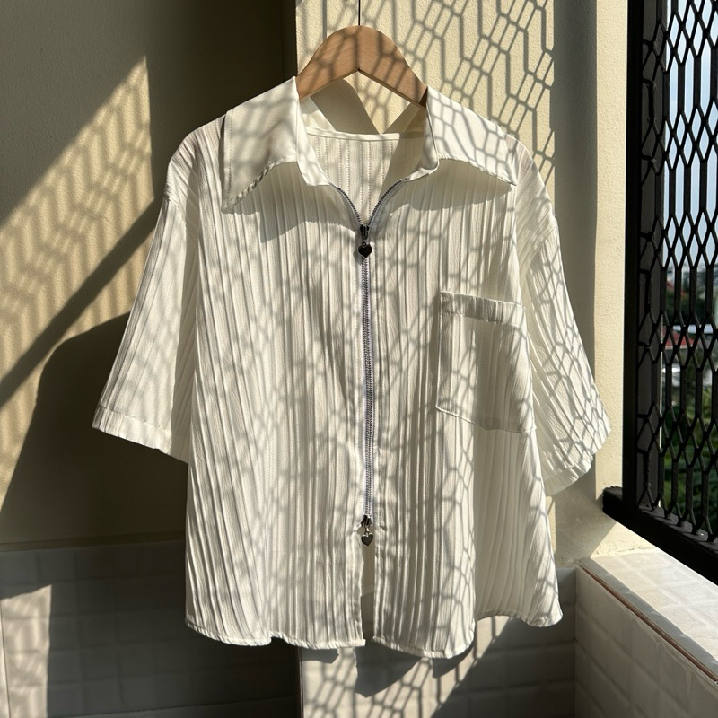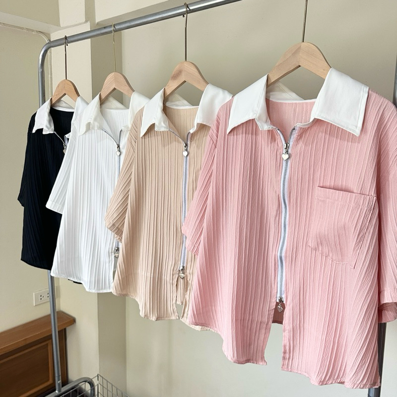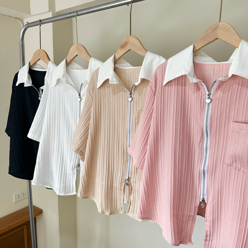 Detail : เสื้อแขนสั้นทรงโอเวอร์ไซส์ซิปหัวใจ ปรับซิปรูดขึ้นรูดลงได้ตามชอบ ใส่สบาย ใส่ได้ทุกวันน